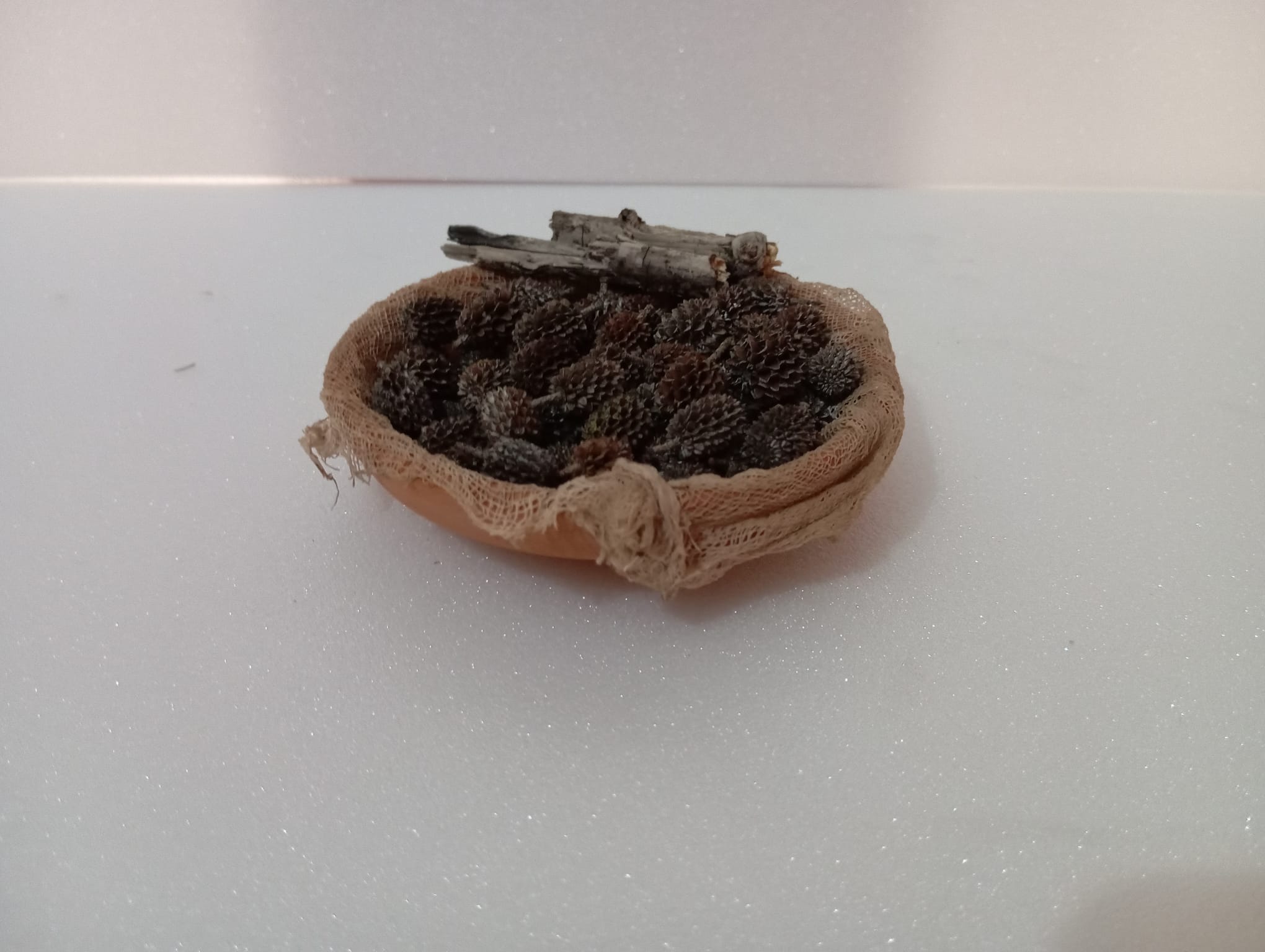 Carro de madera de balsa, conjunto de cántaros, canastos, rastrillo y jaula: 60€.