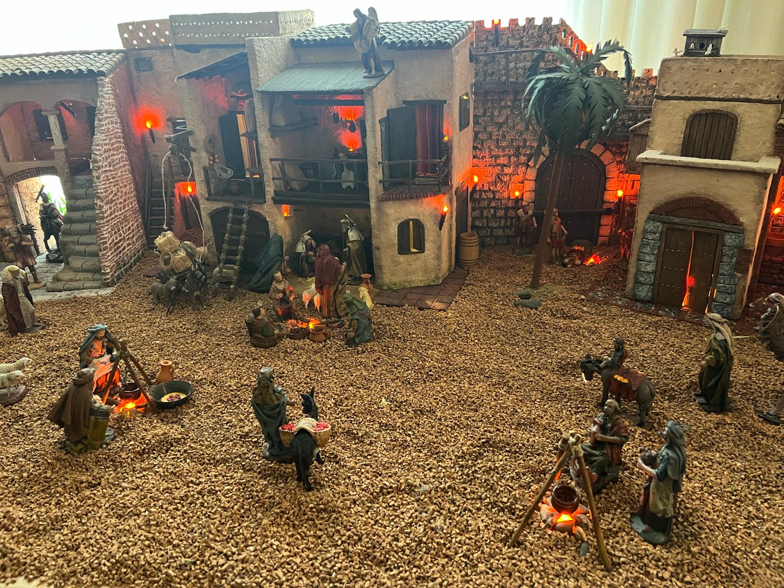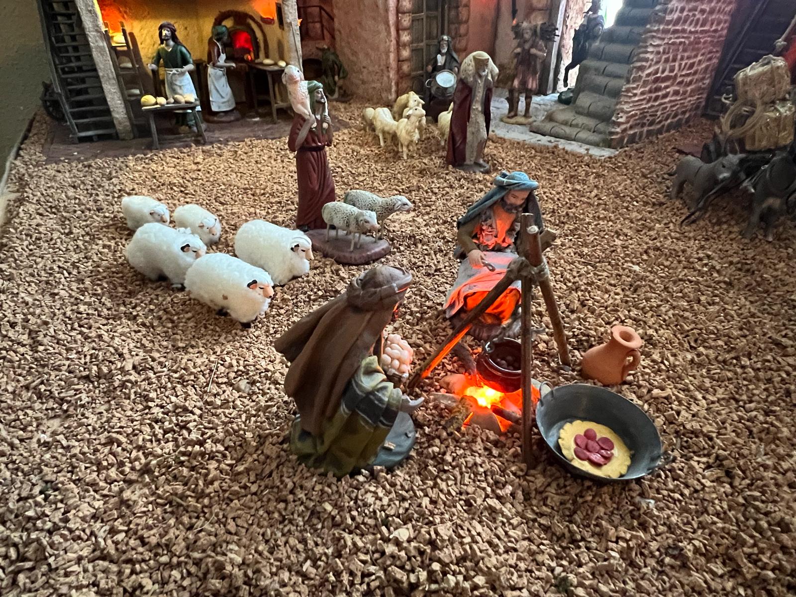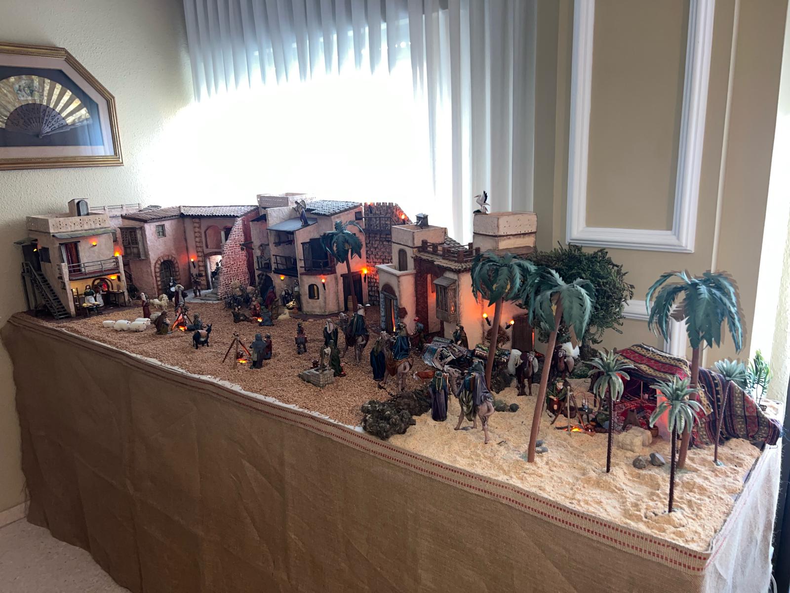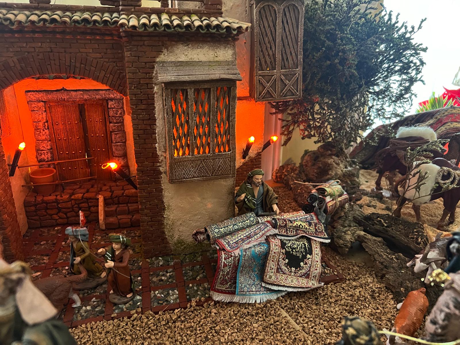 Bien, es un belén totalmente artesanal, todo hecho por mi en porexpan, excepto las figuras que son de comercio, de talla 12 cm, principalmente de barro y barro entelado del fabricante AMO, y de otros fabricantes; tambien las hay de resina y alguna otra de otras materias.