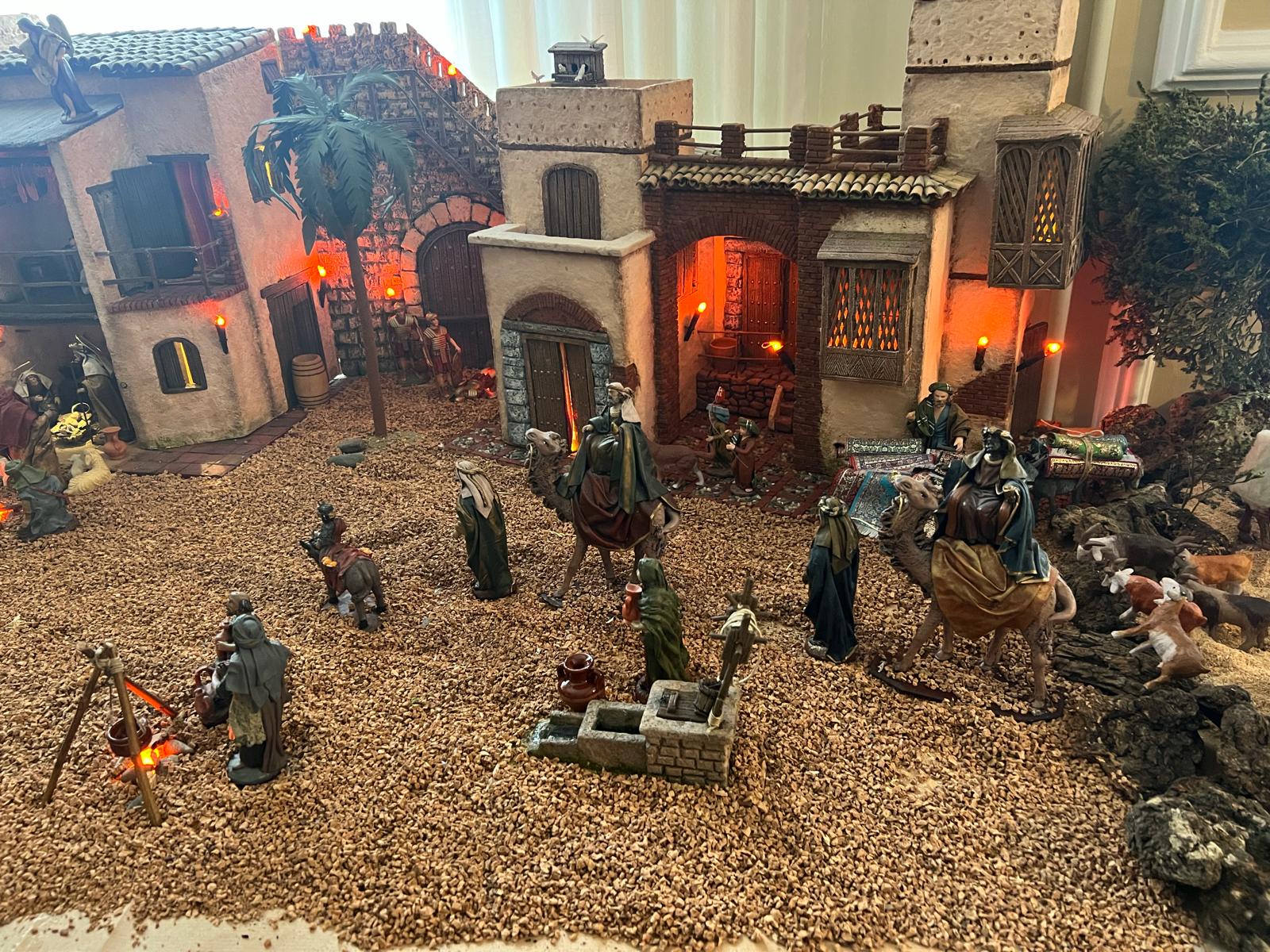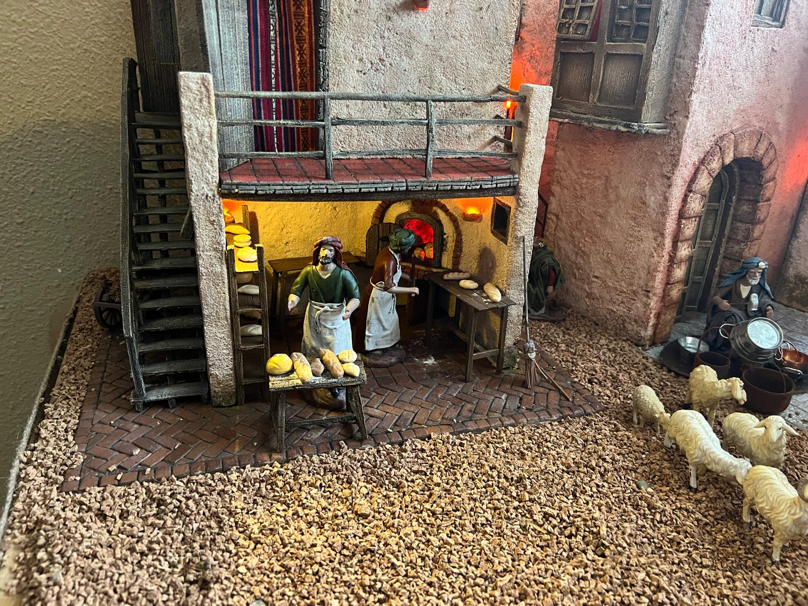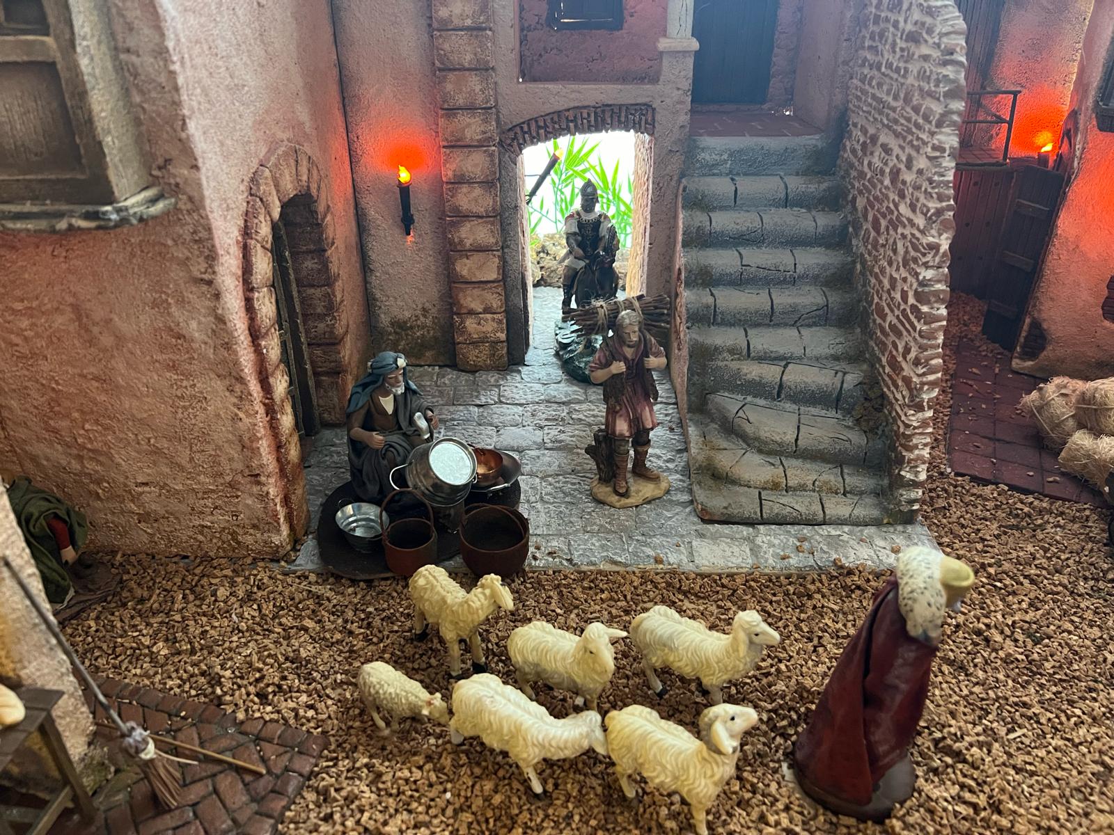 Bien, es un belén totalmente artesanal, todo hecho por mi en porexpan, excepto las figuras que son de comercio, de talla 12 cm, principalmente de barro y barro entelado del fabricante AMO, y de otros fabricantes; tambien las hay de resina y alguna otra de otras materias.