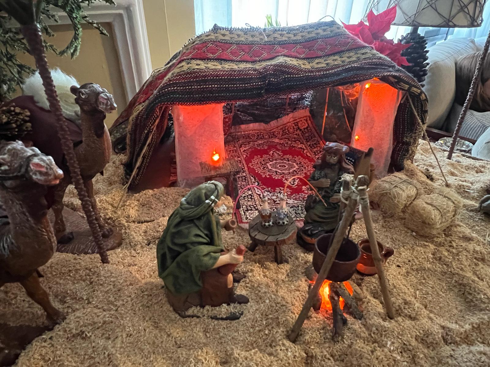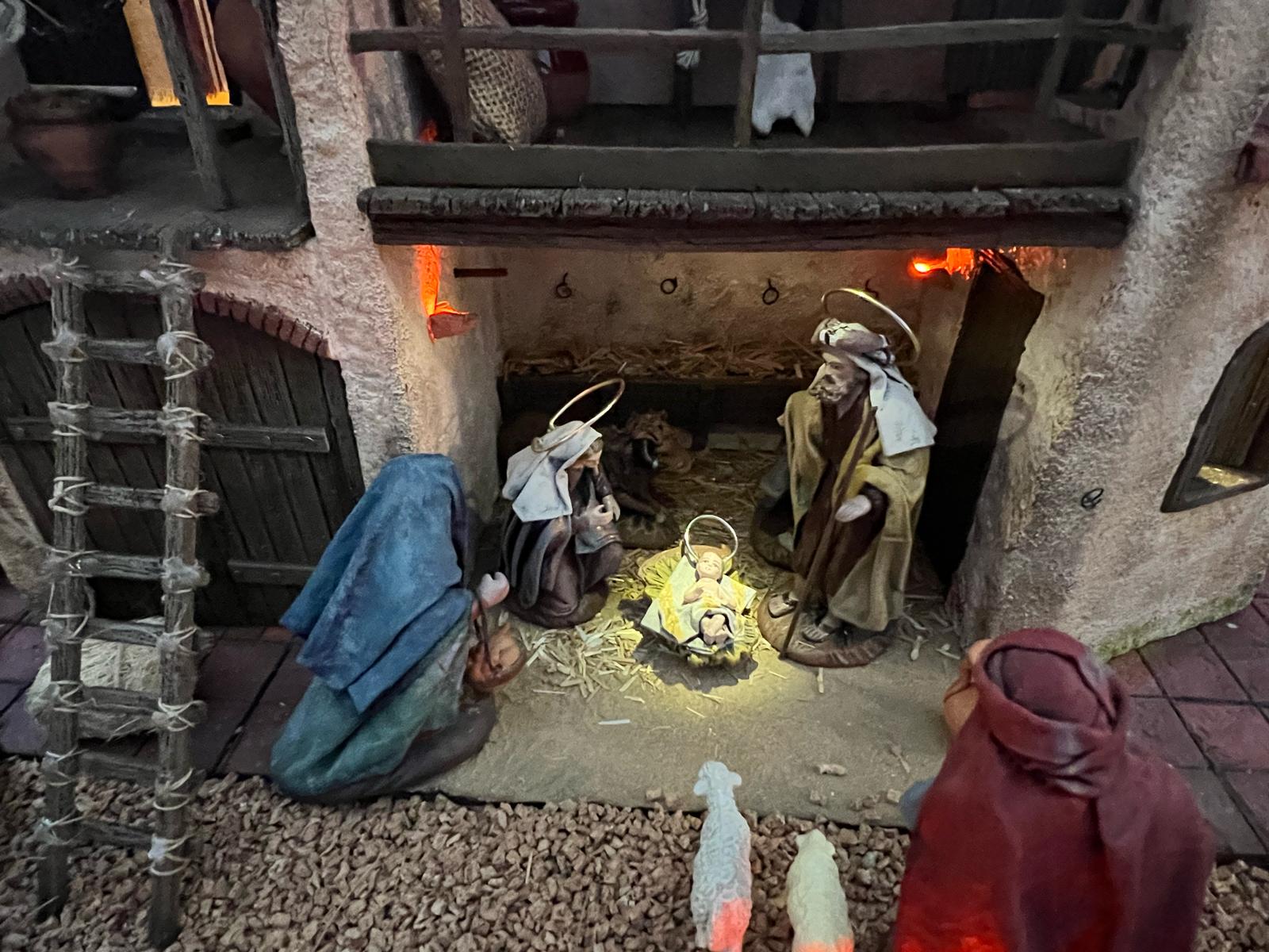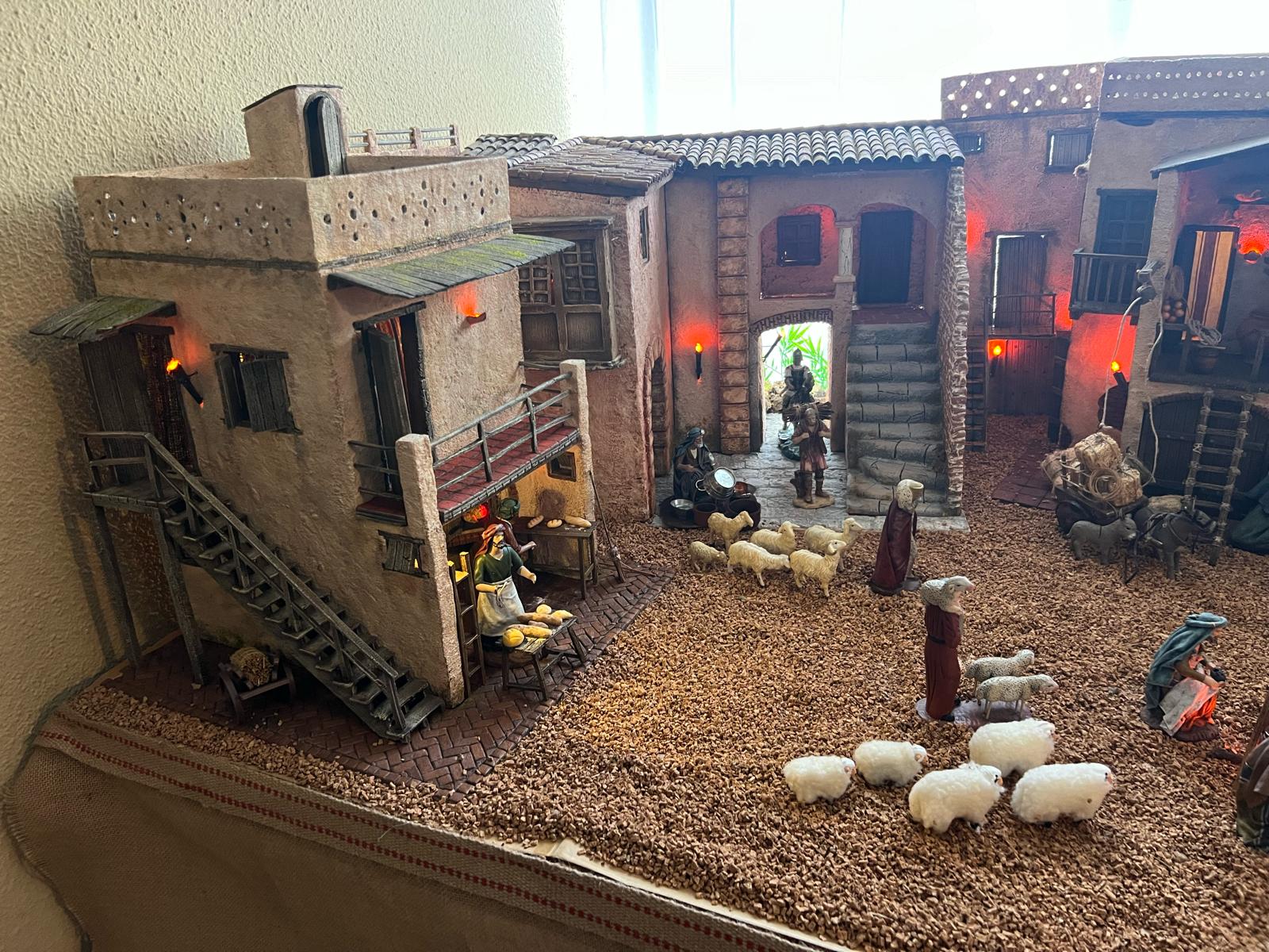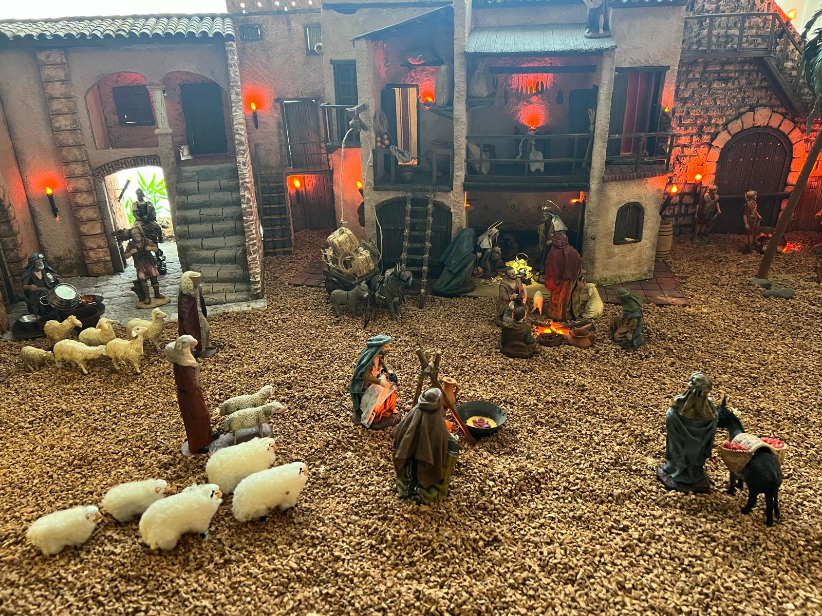 Bien, es un belén totalmente artesanal, todo hecho por mi en porexpan, excepto las figuras que son de comercio, de talla 12 cm, principalmente de barro y barro entelado del fabricante AMO, y de otros fabricantes; tambien las hay de resina y alguna otra de otras materias.