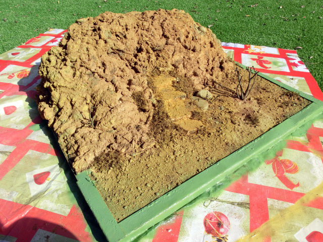 Hola amigos vendo esta montaña de 57cm de largo, 20cm de alta y 25cm de fondo realizada con espuma de poliuretano y cubierta con tierra natural sobre una base de porexpan extruido de 90x75cm también cubierta con tierra natural. Su precio es de 30€. Aquí dejo mi numero por si alguien esta interesado 660718001. Saludos.