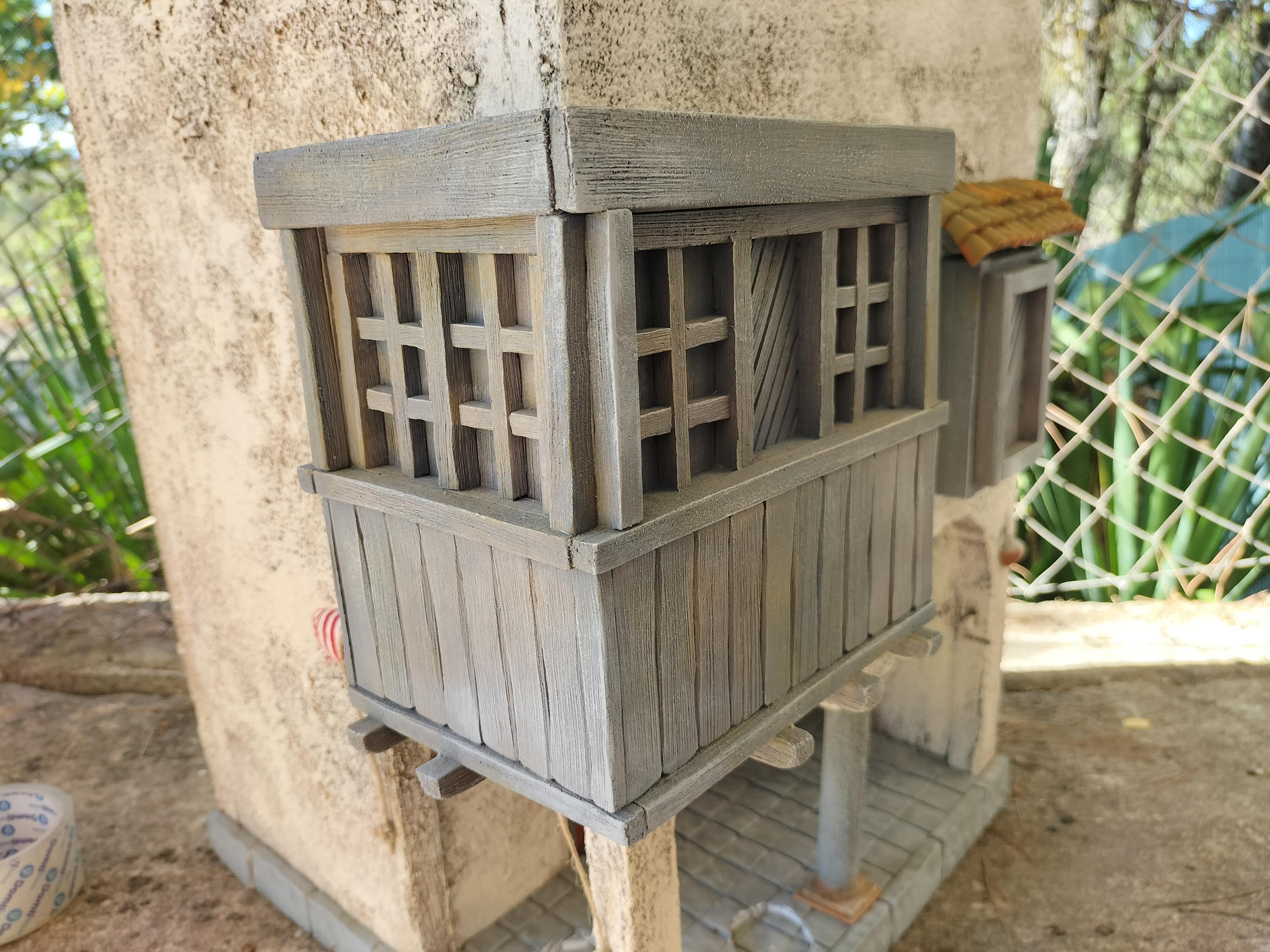 Vendo casa con mirador. Luces efecto llama, necesario adaptador y conector jack. Elaborado en dos caras.
