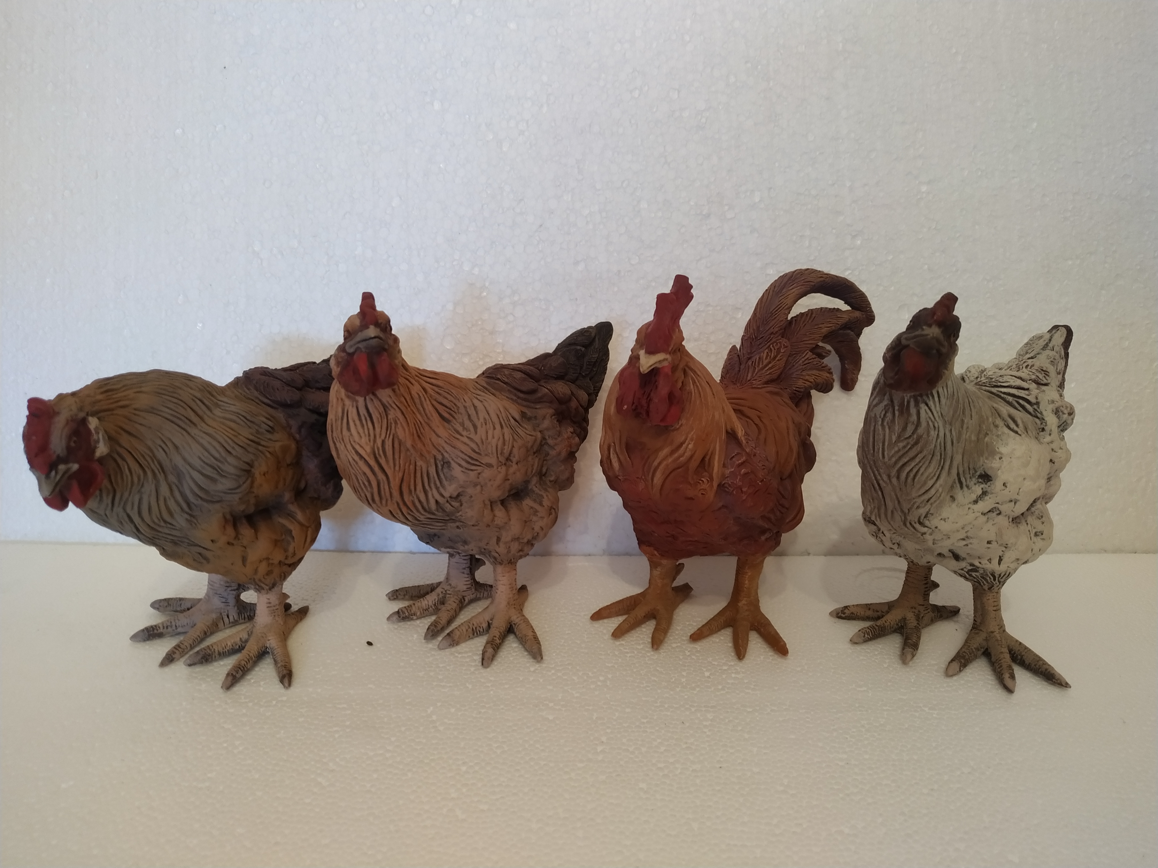 Se vende 1 gallo y 6 gallinas realizad@s en barro cocido y pintado al acrílico.Para figuras de 35 a 40 cms.35€ cada pieza.Envío por cuenta del comprador.