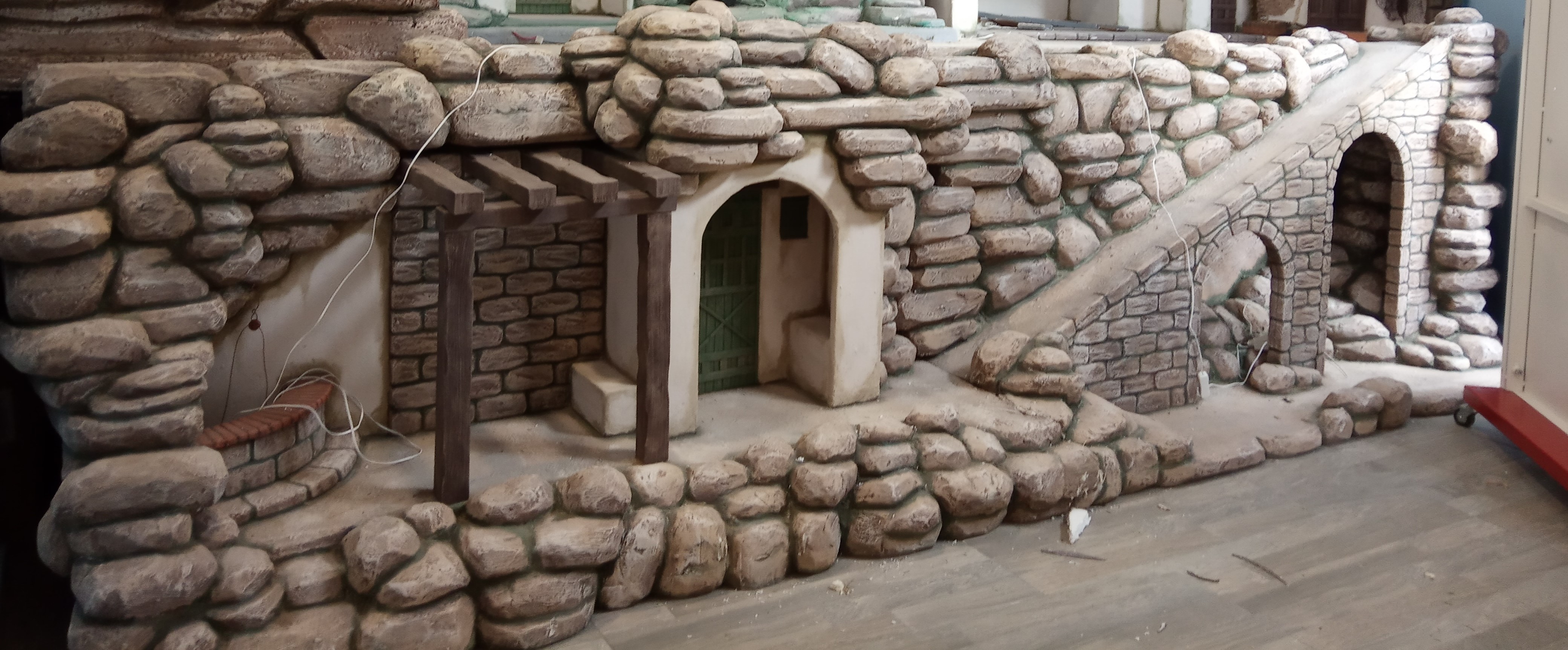 Vendo conjunto escenografia para figuras en primer plano de 28-35 cm. Consta de 2 modulos de 1 metro X 0,50 metros cada uno. Total 3 metros de ancho x 0,50 de fondo. Incluye luces.