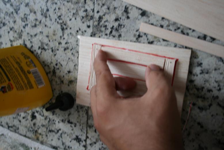 Utilizo madera de balsa como veis en la foto, en otros casos utilizo el corcho de colores, pero siempre empleando la misma tecnica.