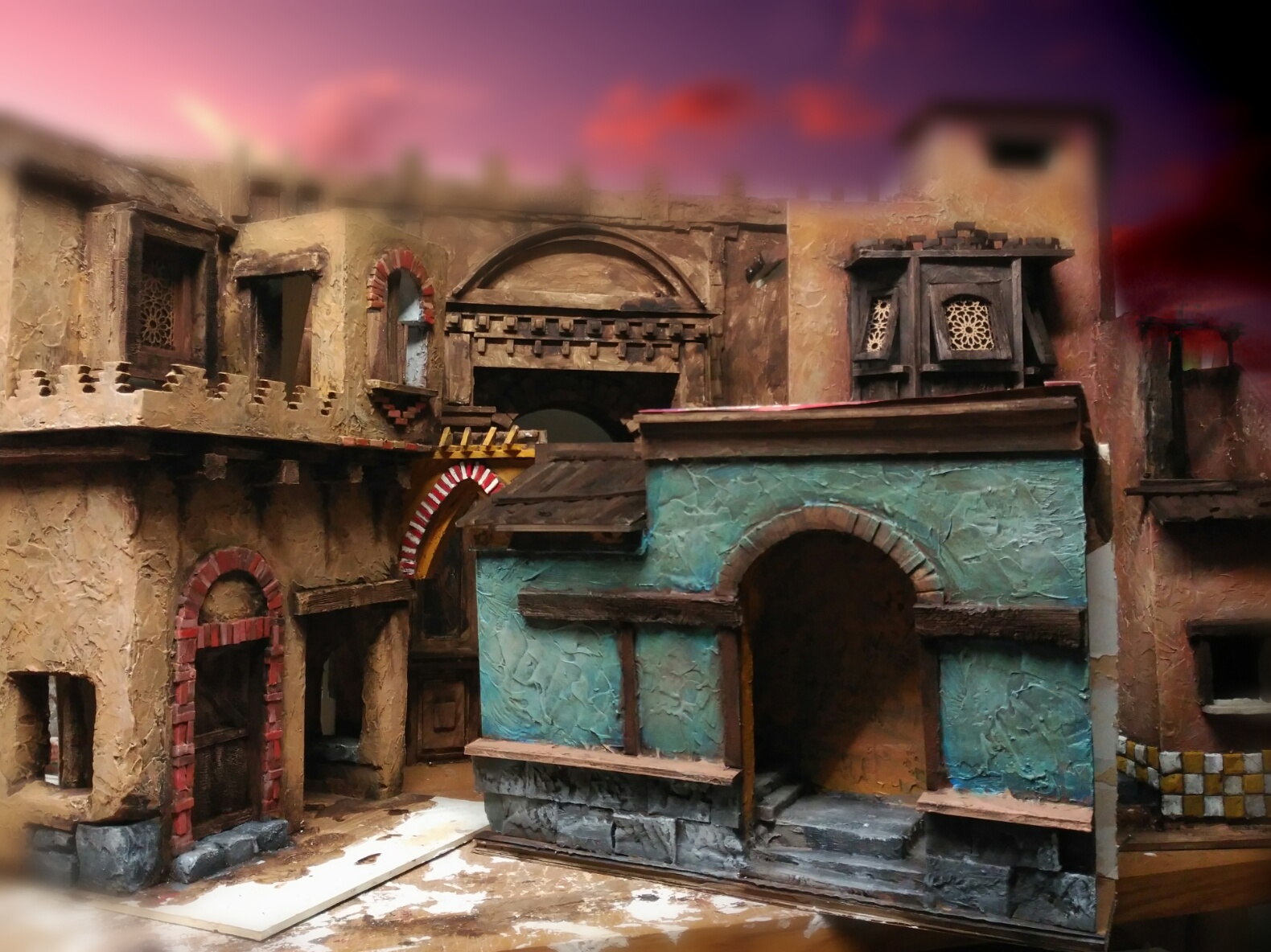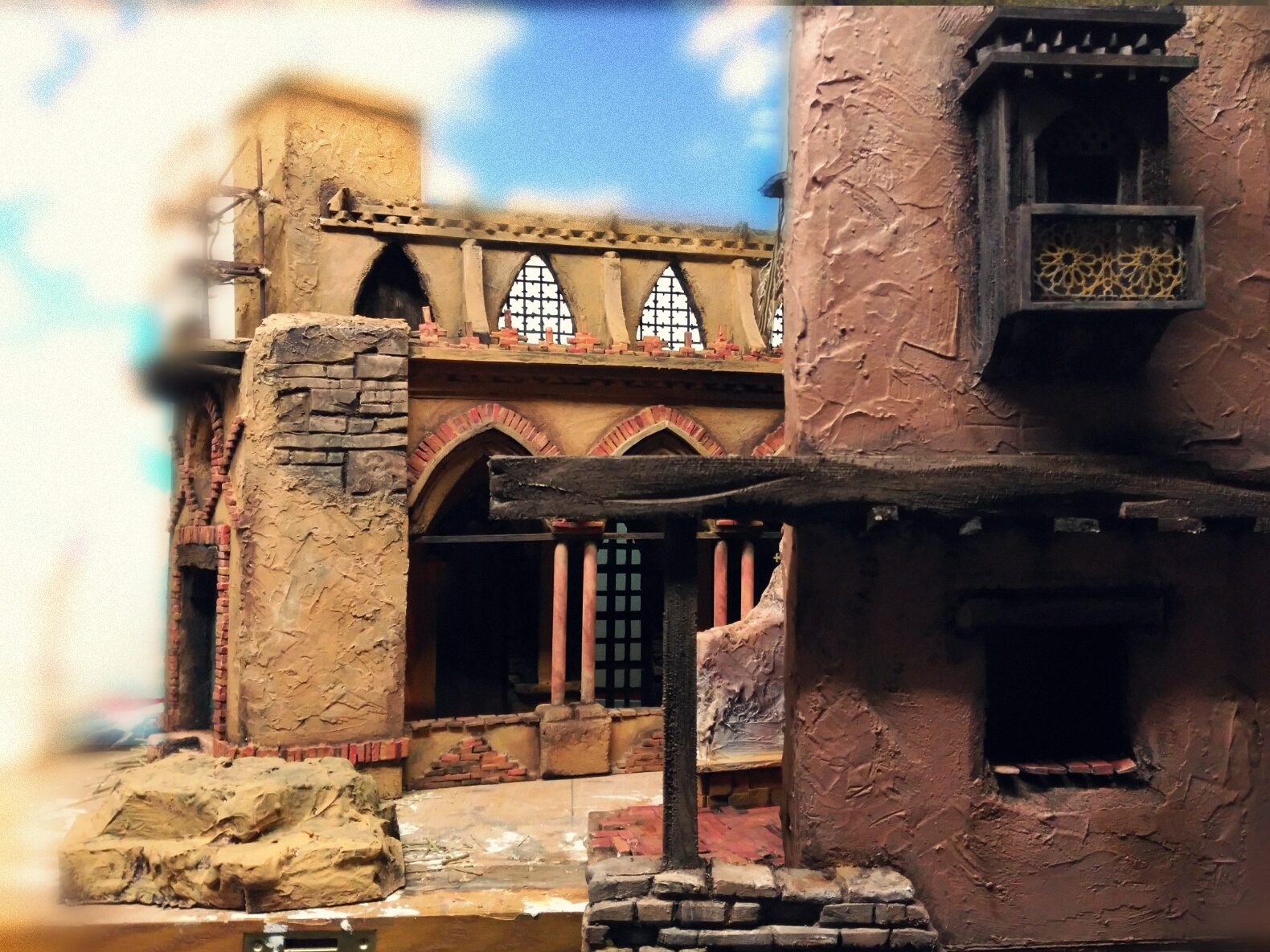 Un diorama titulado "Vía Dolorosa" que estrenaremos en la próxima semana santa. Este trabajo recrea parte del camino que trazó Cristo en su camino hacia el calvario, donde vemos a la Santa mujer Veronica, a Maria Magdalena y a María, las tres, en la escena principal junto a Cristo y al Cirineo. Vereis un gran cortejo Romano y demás personajes de la época. Arquitectonicamente hablando, seguimos con el estilo judeo\árabe y alguna pincelada del gótico.