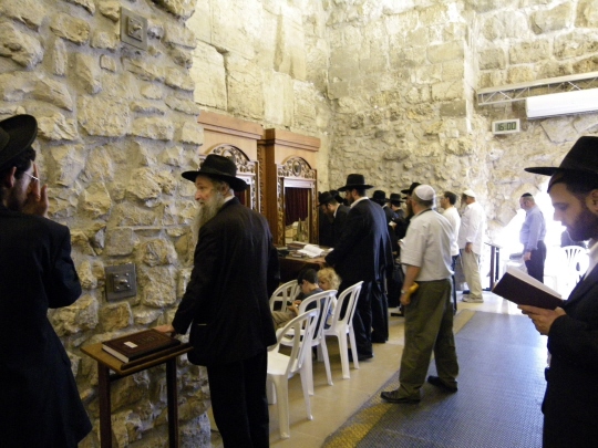 El milenario edificio que alberga la tumba del rey David en el Monte Sión de Jerusalén está casi siempre atestado de gente; algunos vienen a orar y a rendir tributo al célebre rey de Israel y antepasado del Mesías, mientras que otros recitan textos sagrados durante todo el día en la antesala de la tumba.
