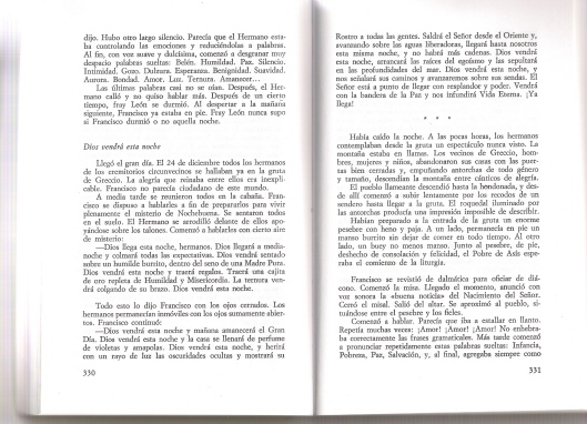Eres único no dejas de sorprender al personal,,ja..ja.. El video muy logrado, he leido los pasajes y se me ha ocurrido aprovechar este post para recomendar a todos los Belenistas la lectura de un libro sobre San Francisco de Asís, donde se relata como realizó Francisco el primer Belén, es un libro que recomiendo para comprender la humanidad y sensibilidad de nuestro Patrón. No se como va a quedar pero cuelgo unas fotos que espero se puedan leer, donde se relata la primera noche buena con un Belén.