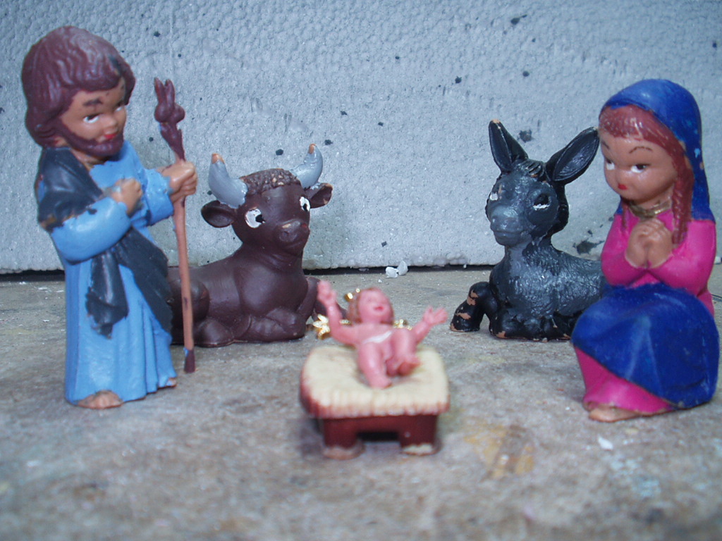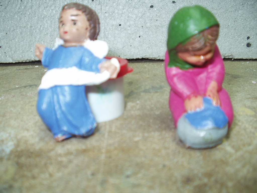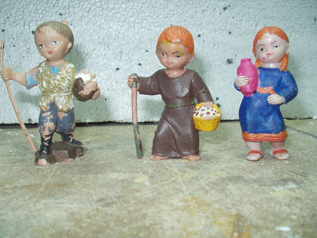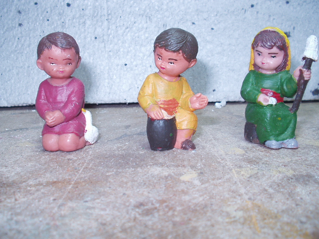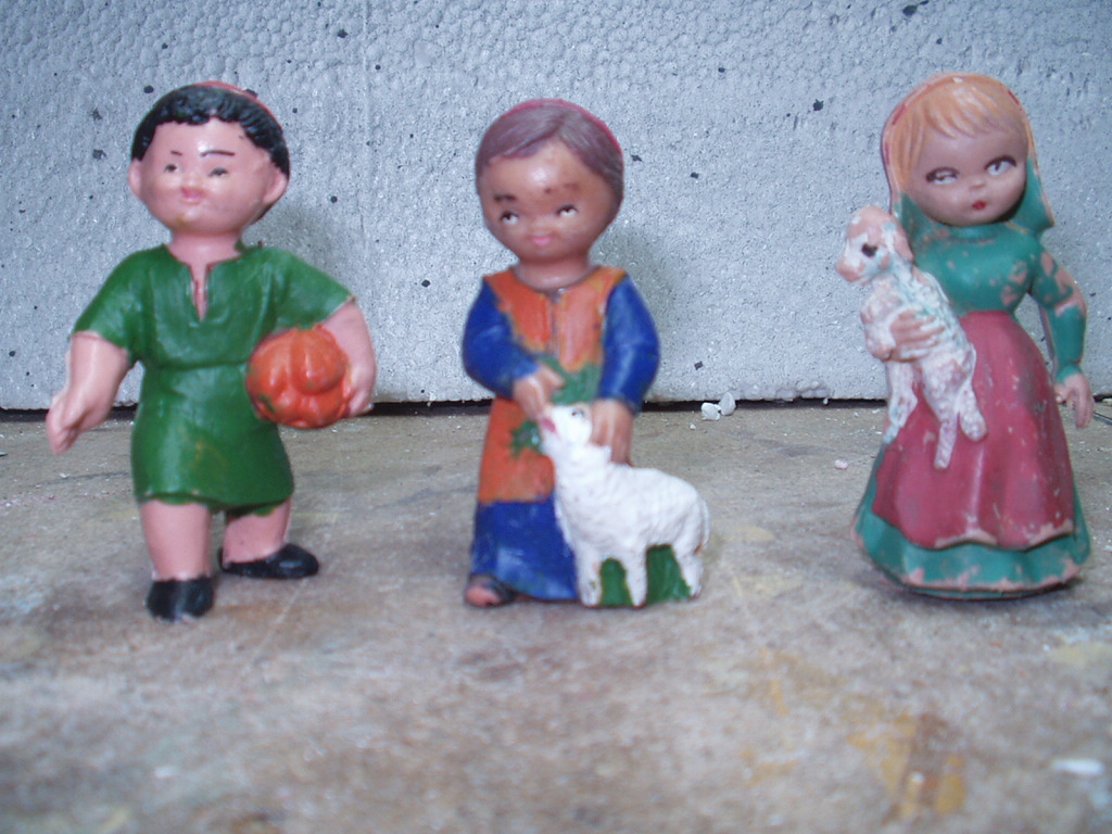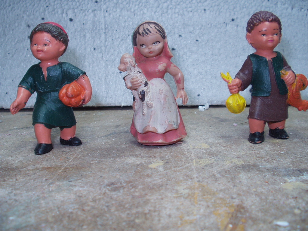 Yo tengo uno igual, mi madre me lo compro cuando tenia 2 o 4 años, osea unos 22-24 años, de belen, el haber aguantado tantos años, y dos niños hizo que las figuras tuvieran el aspecto de las tuyas, pero el año pasado las pinte y banicé, y como cada año, las seguimos poniendo, en nuestro belén, me gustan las fguras que veo aquí pero yo sigo poniendo las de los cabezones, no quiero otras son ya parte de mi historia, es más ahora que vivo sola voy a buscar las mismas para montar mi pequeño belén y empezar otra tradición en mi nueva casa...