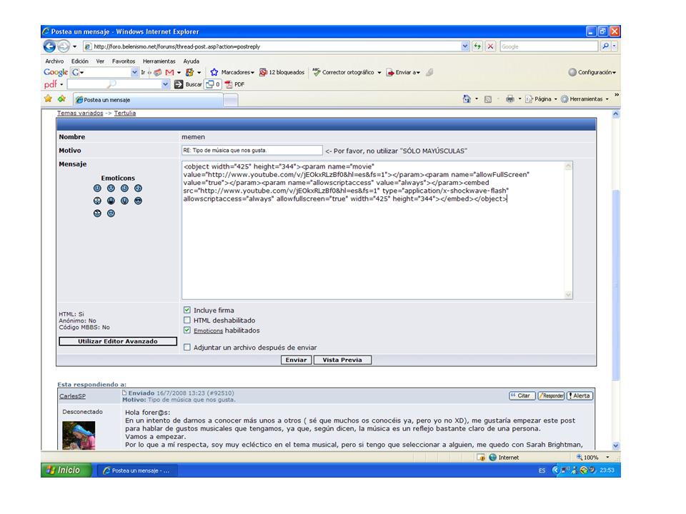 <p>Veamos de nuevo</p><p>Bueno pues no se lo que hago mal.</p><p>Lo siento me rindo</p><p> </p><p><a href="http://www.youtube.com/watch?v=1CxOVwT2VO8">http://www.youtube.com/watch?v=1CxOVwT2VO8</a></p><p> </p>