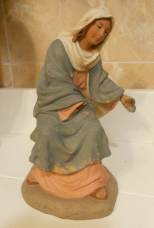 Hola a todos, tengo esta figura de la Virgen que sentada mide 15 cm, así que supongo que el San José sea de 20 cm. Supongo también que sea de Castells, pero buscando sus misterios actuales me sale la Virgen del "complicado" y no esta. ¿Será más antigua y ya no se hace?