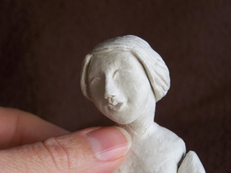Virgen María realizada en pasta de modelar Das, está a falta de lijar, pintar y vestir.