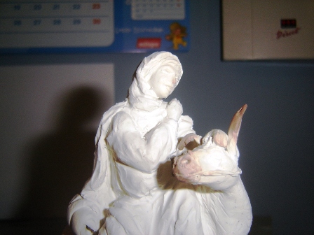 Hola a todo@s , aquí os pongo foto de mis dos nuevas figuras. Una es una Virgen para la escena de Pidiendo Posada. Como vereis me pase un poquillo con el horno y se han tostado las partes más finas de la figura (espero que al pintarla no se note). La otra es una niña que está corriendo. A ver que os parecen.