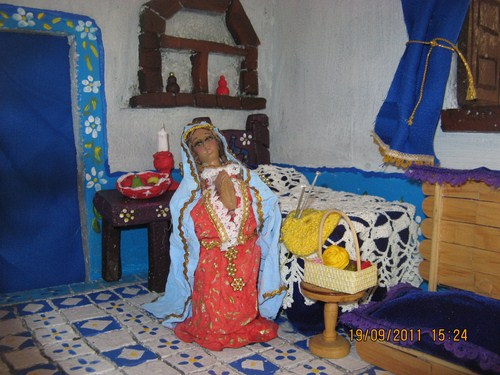 Quisiera compartir este trabajo que es el primero para nuestro Belén familiar 2011, antes debo decir que tengo 20 años montando el nacimiento (mis años de casada) aunque antes también colaboraba en el de mi casa paterna, pero siempre lo he hecho con mucha devoción y cariño pero cero técnica, un día apareció el foro mientras yo navegaba y no saben las felices veladas que yo he vivido leyéndolos y aprendiendo, así que aunque nueva no soy cronológicamente hablando me siento como colegiala ávida de aprender cosas de tan preclaros belenistas, ojalá y pueda subir las fotos para que vean esta visitación. Reconozco que estoy aún como en primer grado. Gracias y el Niño Jesús los bendiga siempre.
