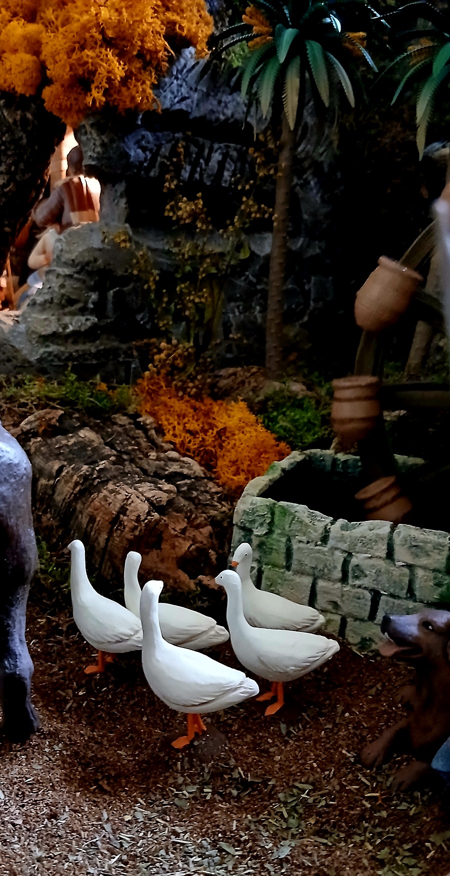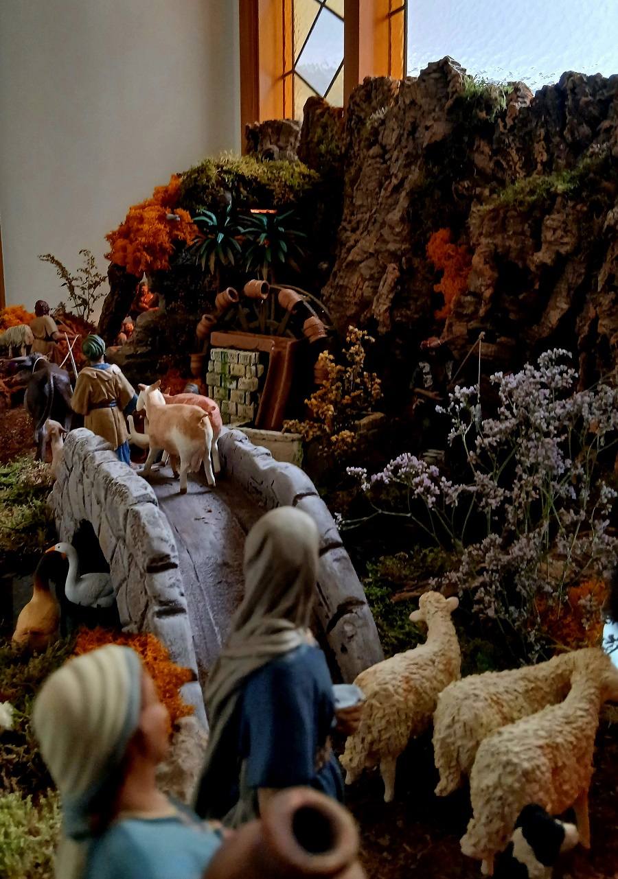 Me cautiva ese uso año tras año de la vidriera como filtro entre lo profano y lo sagrado. No es solo iluminación; siempre pienso que es una transfiguración de la materia. Ver cómo esa luz declinante toca el corcho y el musgo, arrancando sombras que parecen tener vida propia, me recuerda que el belén es, ante todo, un estado del alma [¿lo he dicho ya?]. Has logrado que el entorno [ese serrín y esa vegetación tan cuidados] sea el eco natural del misterio que representan tus maravillosas figuras.