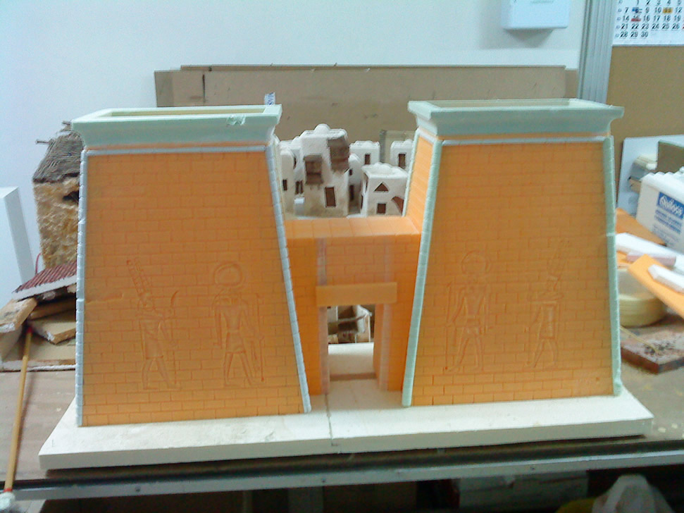 Aqui dejo uno de los templos egipcios que estamos realizando dentro de la asociacion belenista "Fernando Olaya" para el belen de dicha asociacion, a falta de pintar y ponerle los ultimos detalles. Pronto se veran estas construcciones en la web.