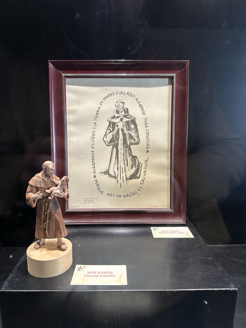 Como son muchas las fotografías que he sacado os dejo en pantalla el inicio de la exposición como homenaje a dos grandes del Belenismo, uno internacional (San Francisco) y otro local, el maestro