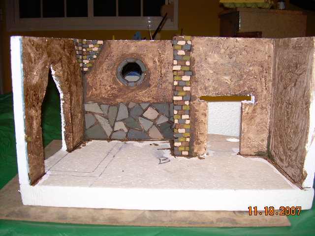 Ya la tengo con el fondo de nogalina y los ladrillos de diferentes tonalidades, la pared he pensado un blanco sucio,pero para los ladrillos no tengo ni idea.