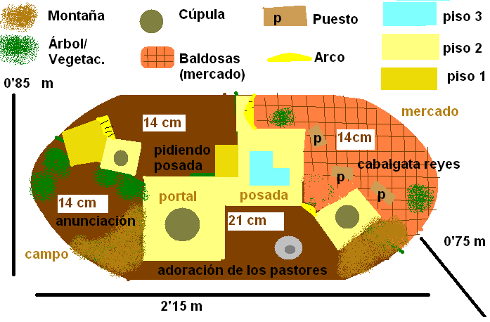 Y para un belén abierto, sin celaje y en el que no quieras delimitar 4 zonas con los edificios, lo mejor quizás es usar todas las figuras del mismo tamaño.
