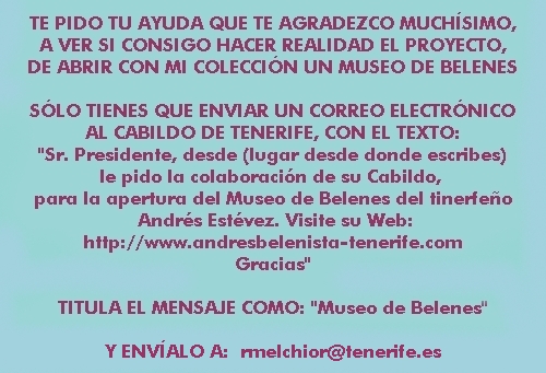aprovechando tu post quiero enseñaros algo,me han regalado un nacimiento precioso,lo han comprado en el Santuario de La Virgen de Guadalupe, en Caceres,me lo han dado ahora,es una campana,mide 6,5 cm,es de fieltro rojo por fuera,y por dentro es de raso blanco,en la parte superior tiene la estrella,y en la base esta el nacimiento,es de metal plateado,las figuras miden 1,4 cm,bonitos tanto para tener como regalo o para coleccionar,una pregunta para Andres,tienes en tu coleccion algunas figuras tan pequeñitas,aunque he visto algunas pequeñas,bueno queria compartirlo con vosotros,espero que os guste,un saludo.