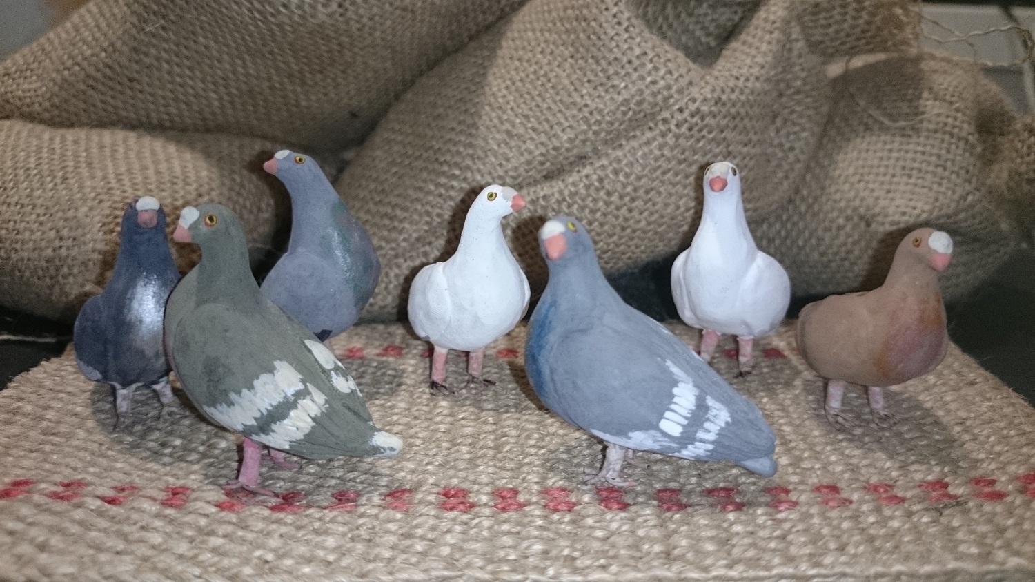 Palomas de barro con patitas que se quedan de pié. Muy reales y bien realizadas