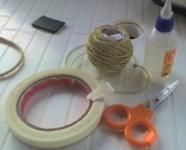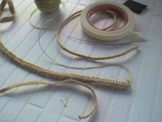 2 pegar sobre la cinta de carrocero enrollar y fijar con el pegamento de contacto ya tenemos la base! No corten el cordel