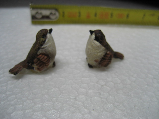 Los pajaritos estan bastante bién, son de resina y los venden por parejas a 2,60 e, hay varios modelos.Te deseo que pases un buen rato con tus compras y mirando todos los artículos belenistas.