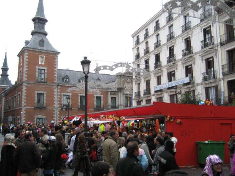 Os pongo unas fotos del aspecto que tenia hoy sábado y deciros que efectivamente han separado los puestos de artículos de broma, los cuales se asientan en la plaza de la Santa Cruz, a unos pocos metros de una de las salidas de la Plaza Mayor.