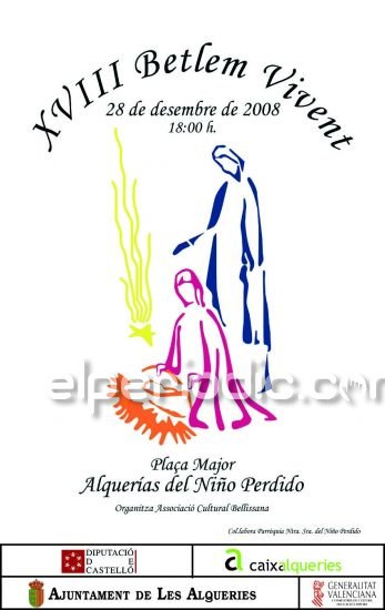 El próximo domingo se celebra en mi pueblo Alquerias del Niño Perdido, Castellón una nueva edición del Belen viviente, lo digo por si alguien esta cerca y quiere verlo, es muy bonito, eso si es en Valenciano. Adjunto cartel, bueno si se subirlo. Gracias