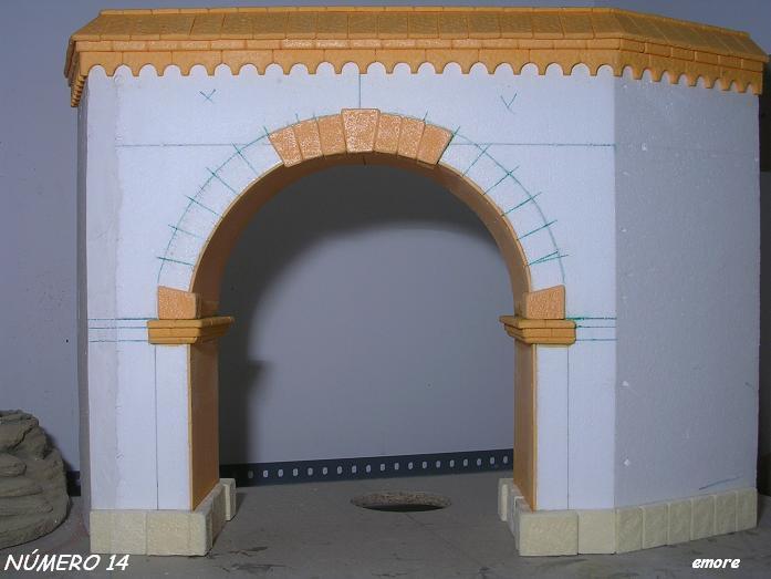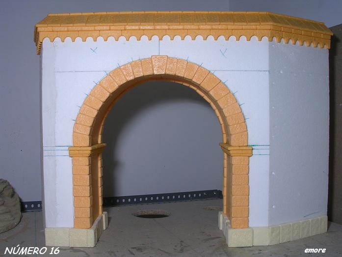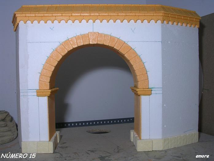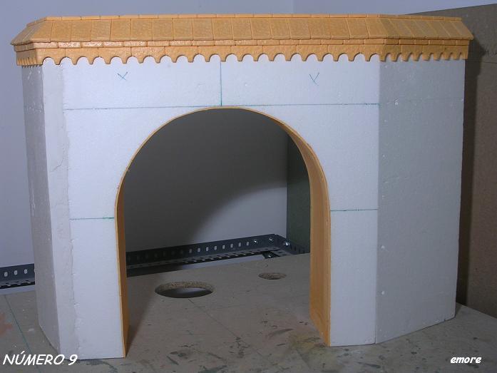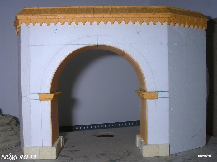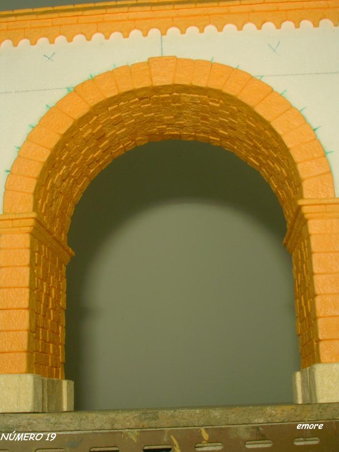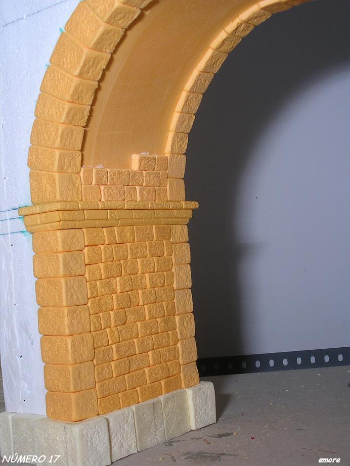 En la cara interna de los dos arcos, he colocado una chapa de poliestireno extruído de 3 mm de grosor y 17 cm de ancha. Dicha chapa la he cortado de una plancha de poliestireno extruído de 3 cm de grosor con la cortadora de porexpán.