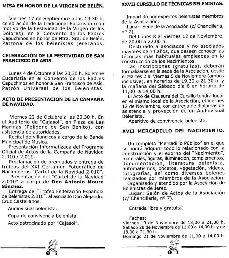Programación de actos de la Asociación de Belenistas de Jerez.