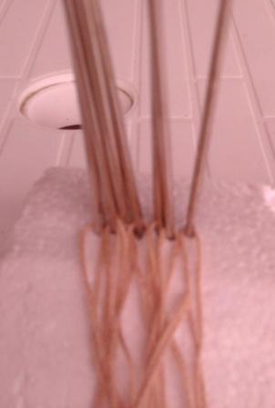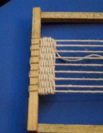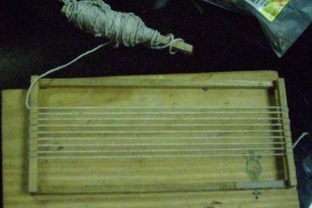 +en el telarcito que muestra asun, la urdime pasa por las tablitas que mueven los pedales es