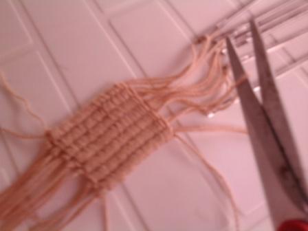 en este caso lo empece bien del borde porque, no pensaba hacer flecos largos ni macrame, si no conviene dejar unos centimetros libres,