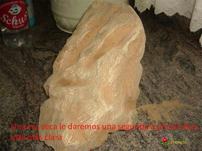 Chonita dijo: " Lo hecho con un trozo pequeño para que conozcais mi técnica pero podéis hacer grandes montañas, pienso que es muy fácil de hacer y a la vez económico."