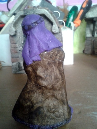 Por qué no pruebas, en lugar de usar pasta para figuras pequeñas ( que es más difícil hacer los pliegues de telas) pruebas con telas encoladas???? Si coges algunas finas ( como gasas, algodones o telas de hilo), al encolarlas les puedes trabajar unos pliegues muy chulos. Si te atreves, papel de cocina liso ( sin dibujos ni texturas) y grueso tambien sirve y queda muy bien para figuras pequeñas.