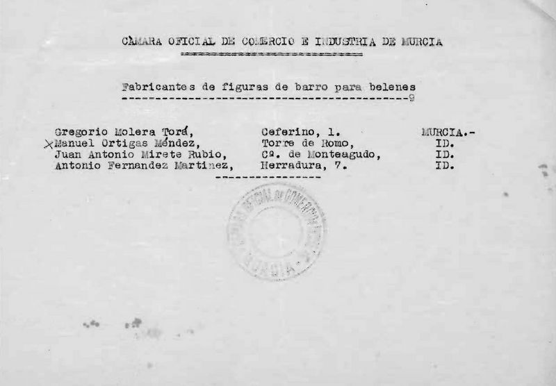 Otro taller que fusilaba figuras catalanas era el taller de Francisco Chacón, en la calle Peligros 1 de Murcia, ver por ejemplo http://foro.belenismo.net/forums/thread-view.asp?tid=22664&mid=... con un misterio copia de Muns y en este otro donde se encuentra unos Reyes también copiados http://foro.belenismo.net/forums/thread-view.asp?tid=22236&post...