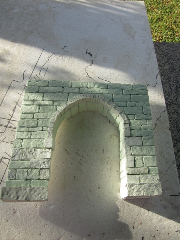 Hecho este merecido preámbulo quiero expresarte mis primeras dudas, que como ya irás viendo no serán las últimas. Observo que la arista superior del arco tiene una inclinación hacia el punto de fuga, mientras que la base es paralela al suelo del belen. Mis preguntas son: 1) ¿La inclinación de la arista superior es real o es una distorsión del ángulo fotográfico?; 2) Si es cierta dicha inclinación, ¿por qué no fuga también la línea que delimita la base del arco?, o ¿es que el suelo del belen es un plano inclinado ascendente hacia la línea del horizonte?. Aquí va la tercera pregunta: En este supuesto (el suelo es un plano inclinado), ¿el ángulo de la arista superior debe ser la suma del ángulo del suelo más el ángulo de la fuga superior para corregir la inclinación del suelo?. Y finalmente, ¿se pueden hacer los módulos de cada edificación sin líneas de fuga, pero aplicando una reducción progresiva en el tamaño de los edificios a medida que éstos se alejan del ojo del observador?