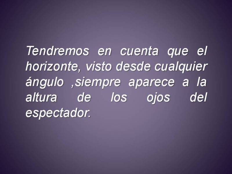 En la diapositiva del mar vemos como la línea del horizonte (donde se junta el mar con el cielo) siempre aparece a la altura los ojos de la persona que lo esta contemplando.