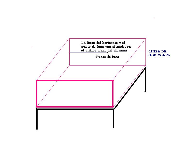 La figura más alta o principal del diorama, ha quedado mas baja que el punto de fuga.