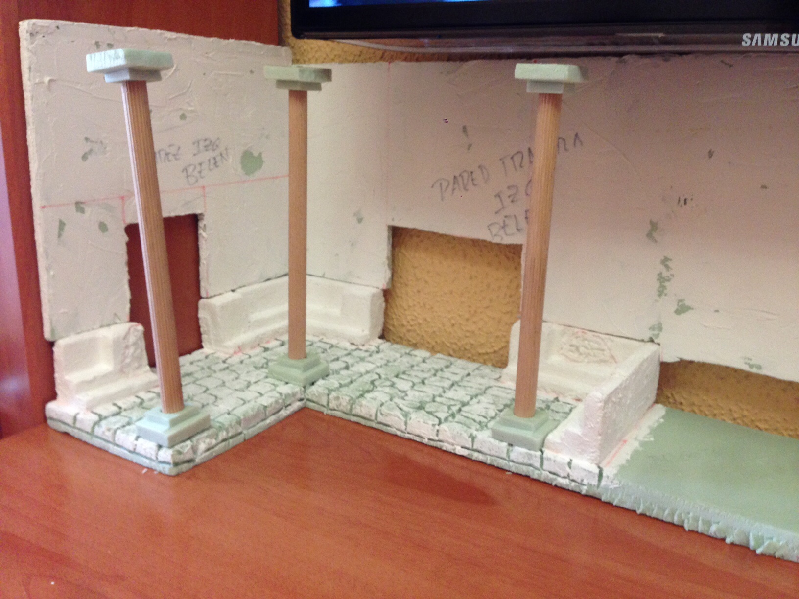 De momento he decidido que el lado izquierdo del Belén no será a dos plantas, será unos soportales, y entre los soportales y el nacimiento una fuente.
