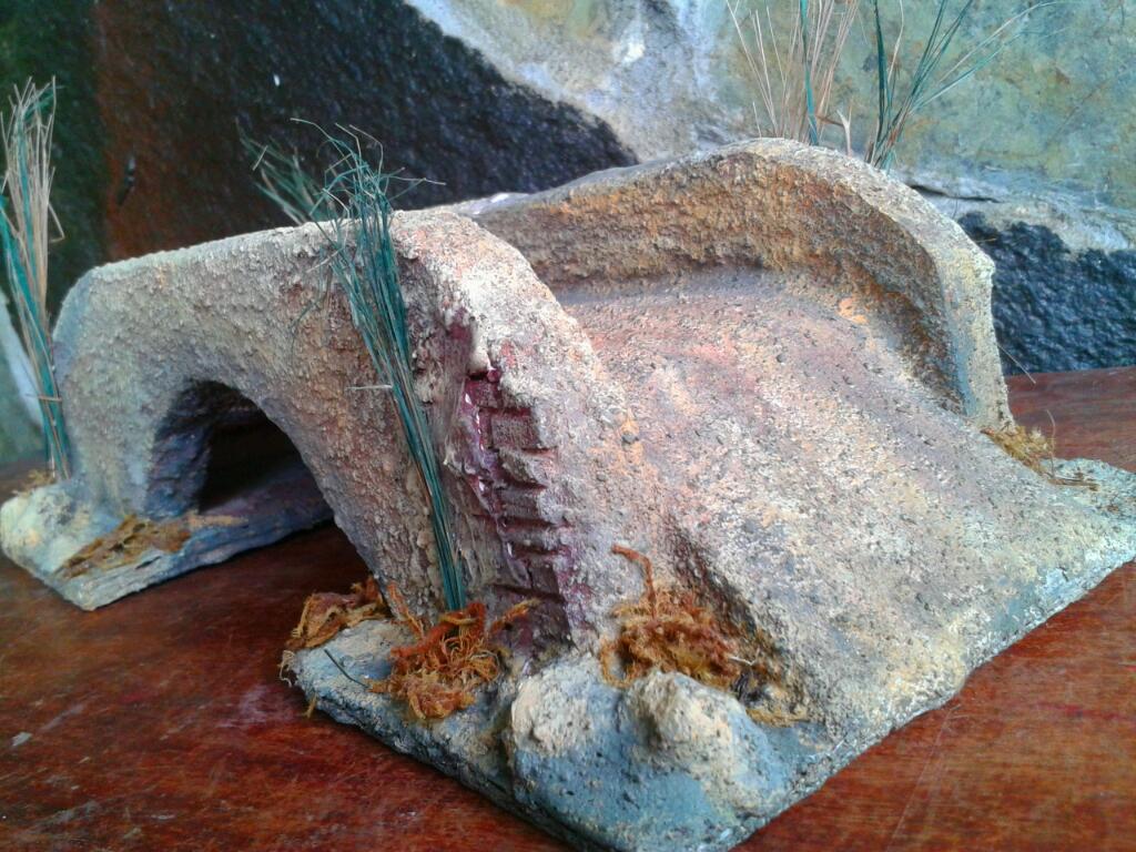 Te ha quedado muy bien. Por decir algo constructivo, suavizaría la inclinación para acceder al paso del puente, pero eso lo puedes hacer en el montaje. Te ha quedado bastante real y es muy al estilo del que trato de hacer mis construcciones. Enhorabuena, puede que me inspire en él para hacer un puente para mi Belén, que no tengo... jejeje.