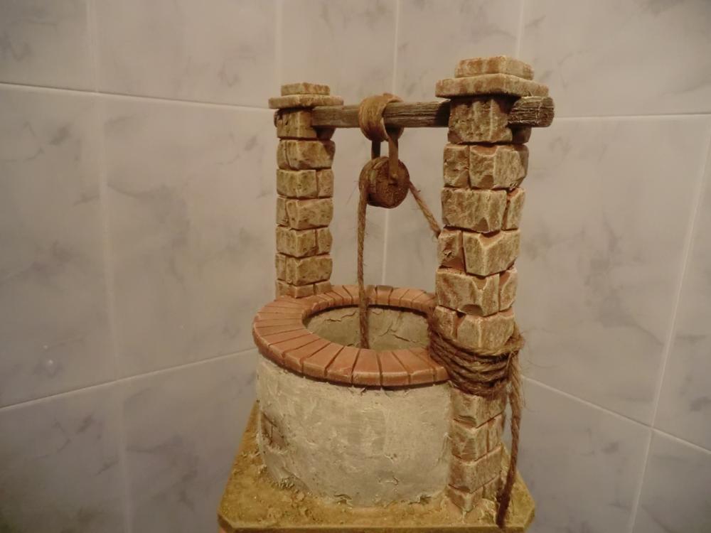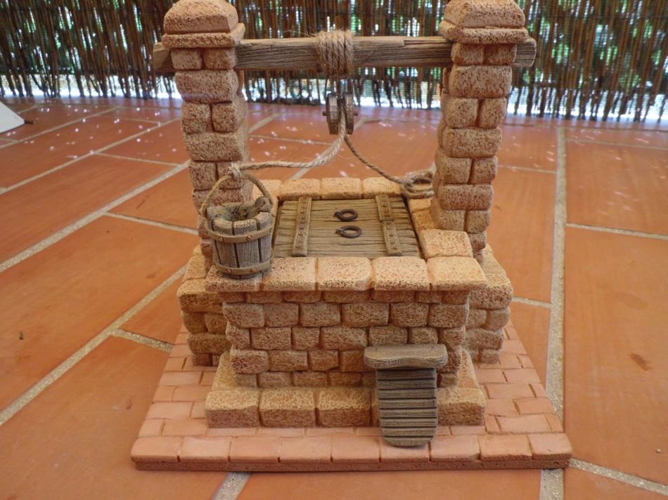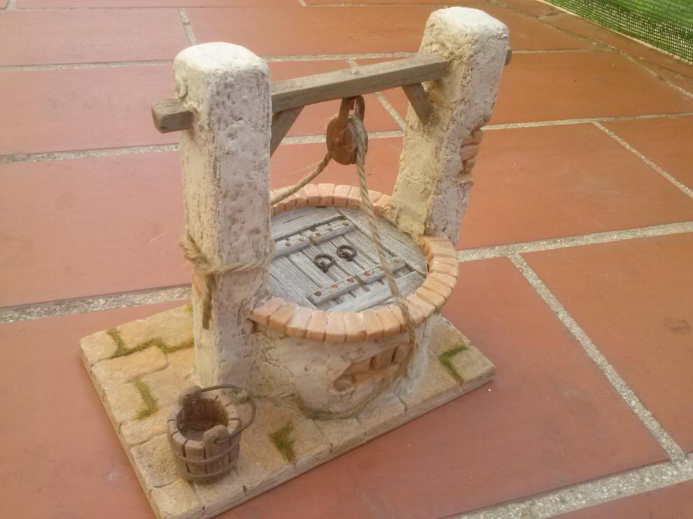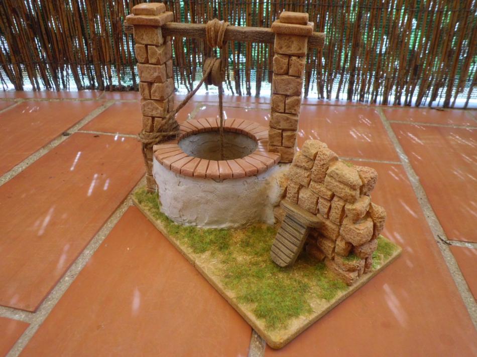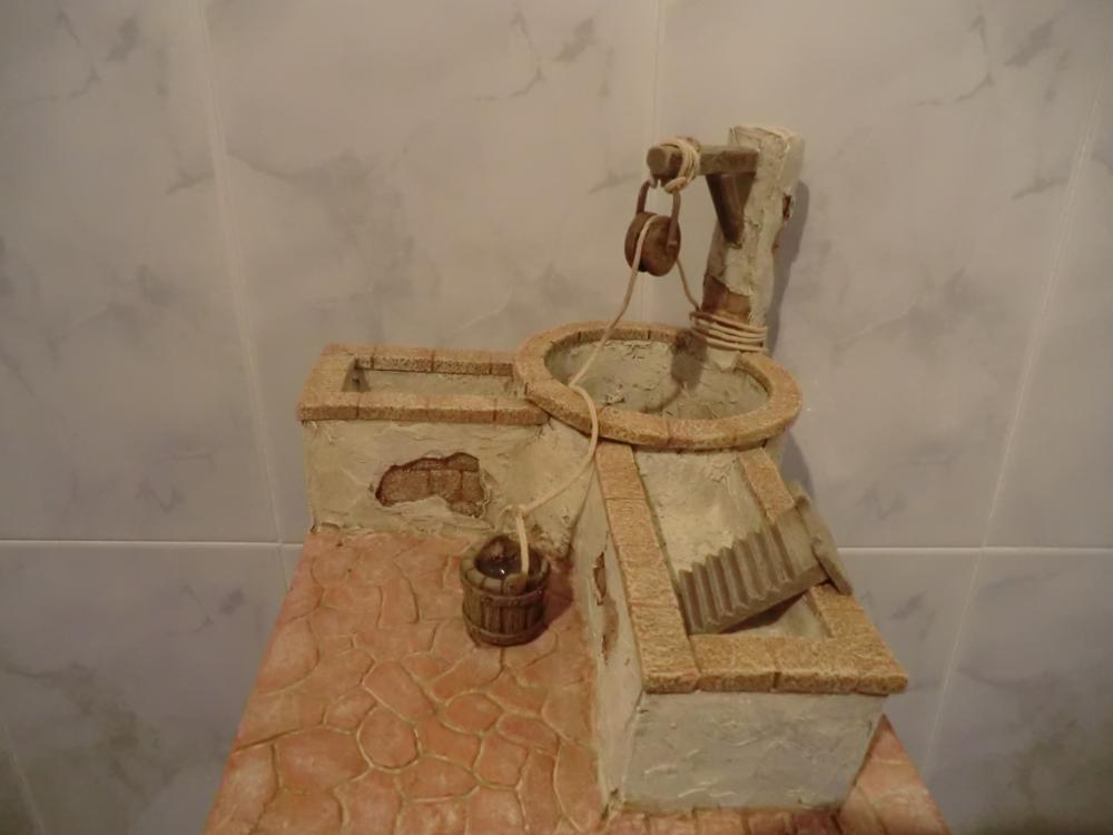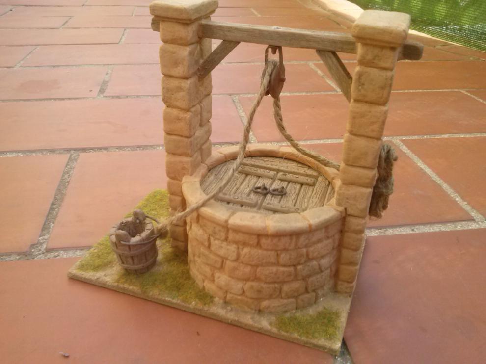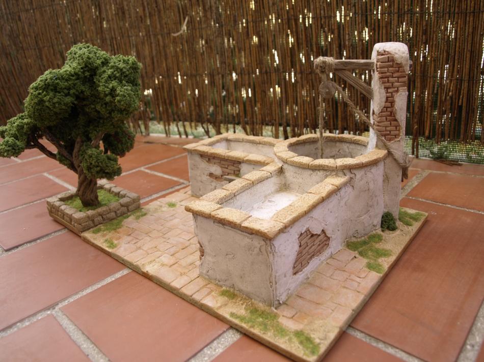 1 pozo - para figuras de 12 a 14cm, el conjunto esta sobre una base de 29x24cm el pozo tiene una altura de 7cm y 6cm el lavadero,, 20cm de largo y 10cm de ancho,precio 60 euros con arbol gastos de envio incluidos ,sin el arbol 40 euros gastos incluidos.