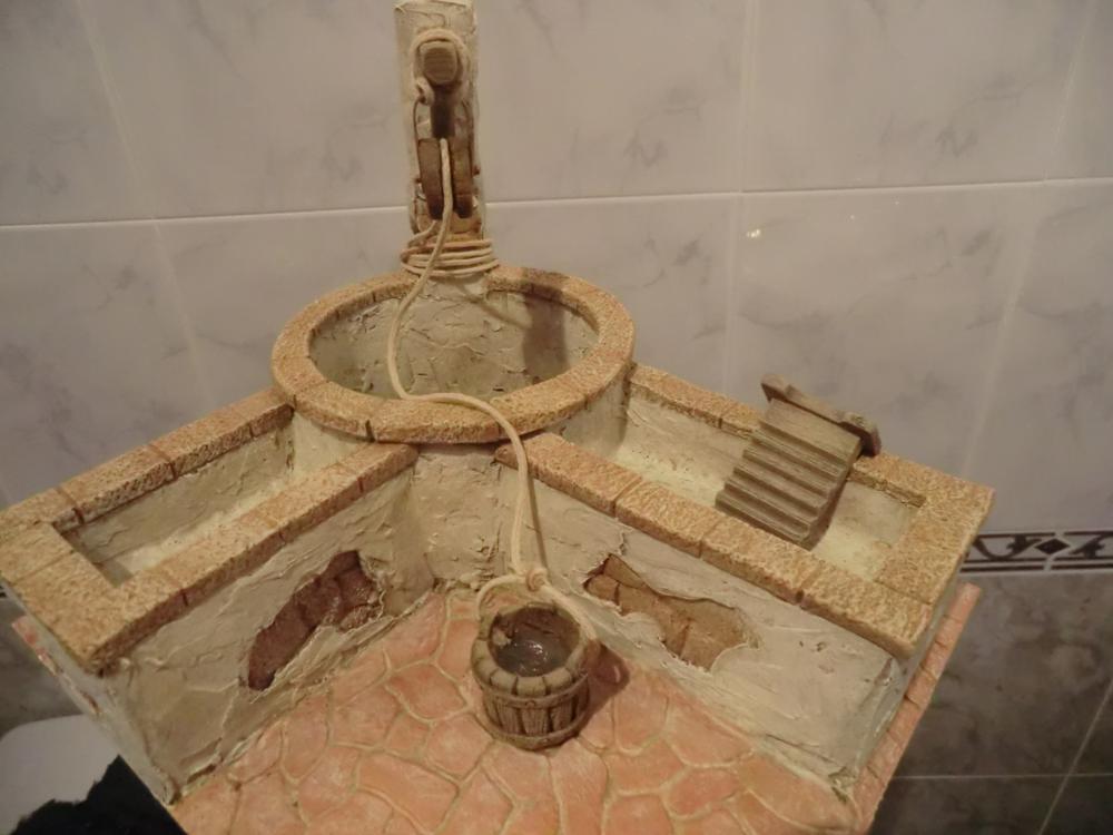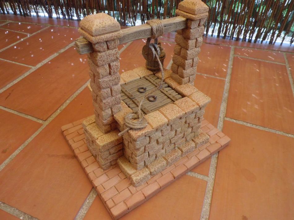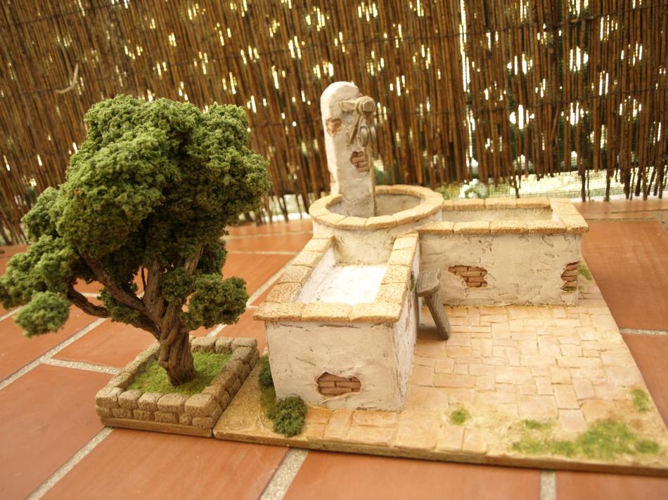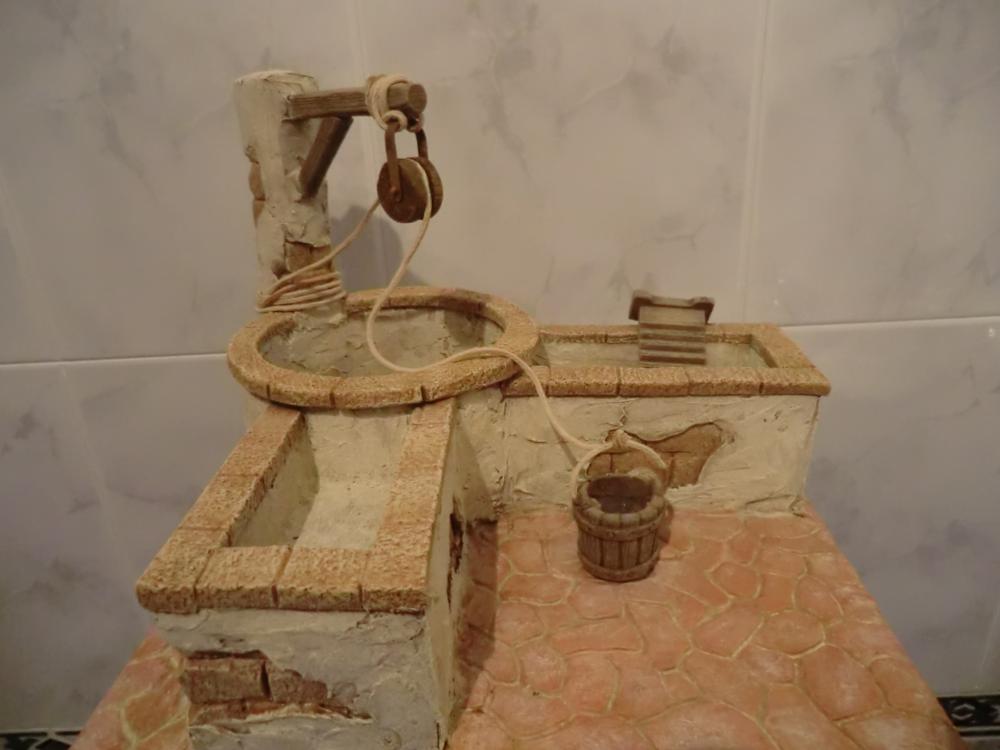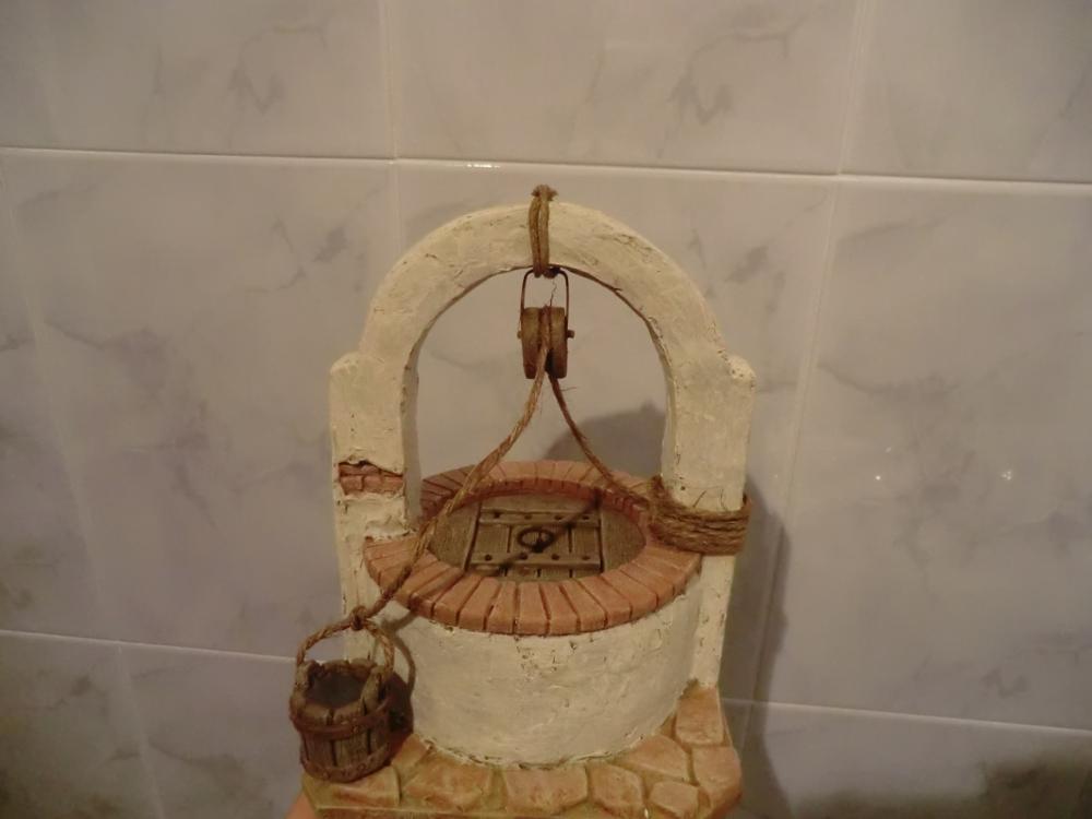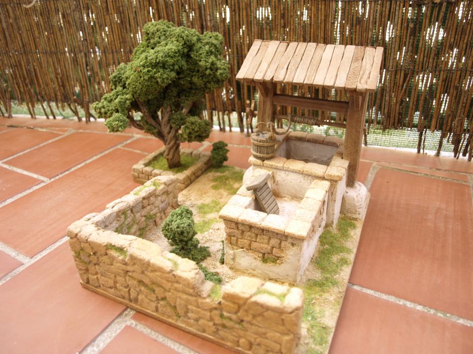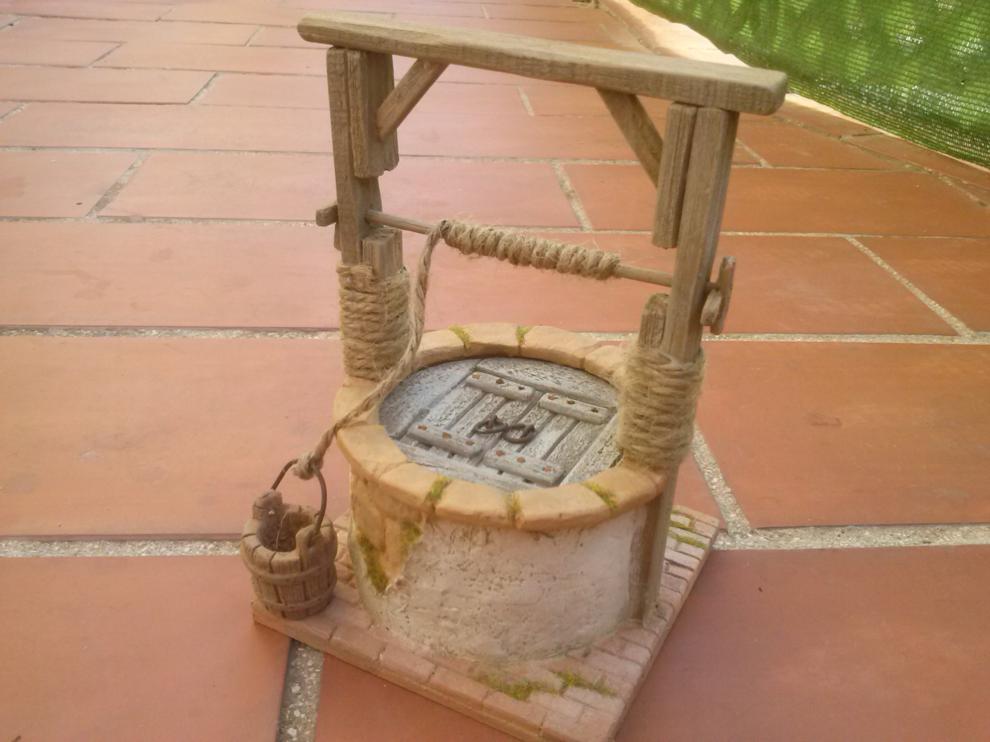 1 pozo - para figuras de 12 a 14cm, el conjunto esta sobre una base de 29x24cm el pozo tiene una altura de 7cm y 6cm el lavadero,, 20cm de largo y 10cm de ancho,precio 60 euros con arbol gastos de envio incluidos ,sin el arbol 40 euros gastos incluidos.