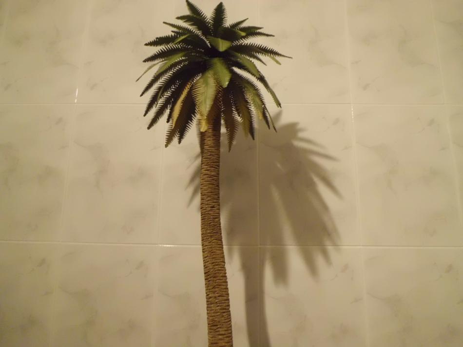 2 palmeras- con una altura de 50 y 55cm,sobre una base de 11x11cm y de 55 a 60 hojas por palmera, realizadas a mano.Precio 60 euros cada una gastos incluidos, por las dos 110 euros gastos incluidos