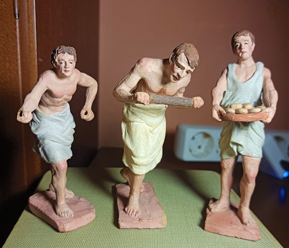 casualidad también recién llegadas y recogidas ayer, figuras de molde de 11 de la anunciación a los pastores de Manuel Muns, sin firma pero completa y sin daños, grupo de fondo de armario del autor con cierta gracia y empaque.