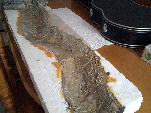 Aprovechando un trozo de porex de 100x30x8 cms., he construido este río que podemos guardar de un año para otro. Y que creo que puede ser de utilidad para aquellos que empiezan y entran en este foro buscando ayuda desesperada.