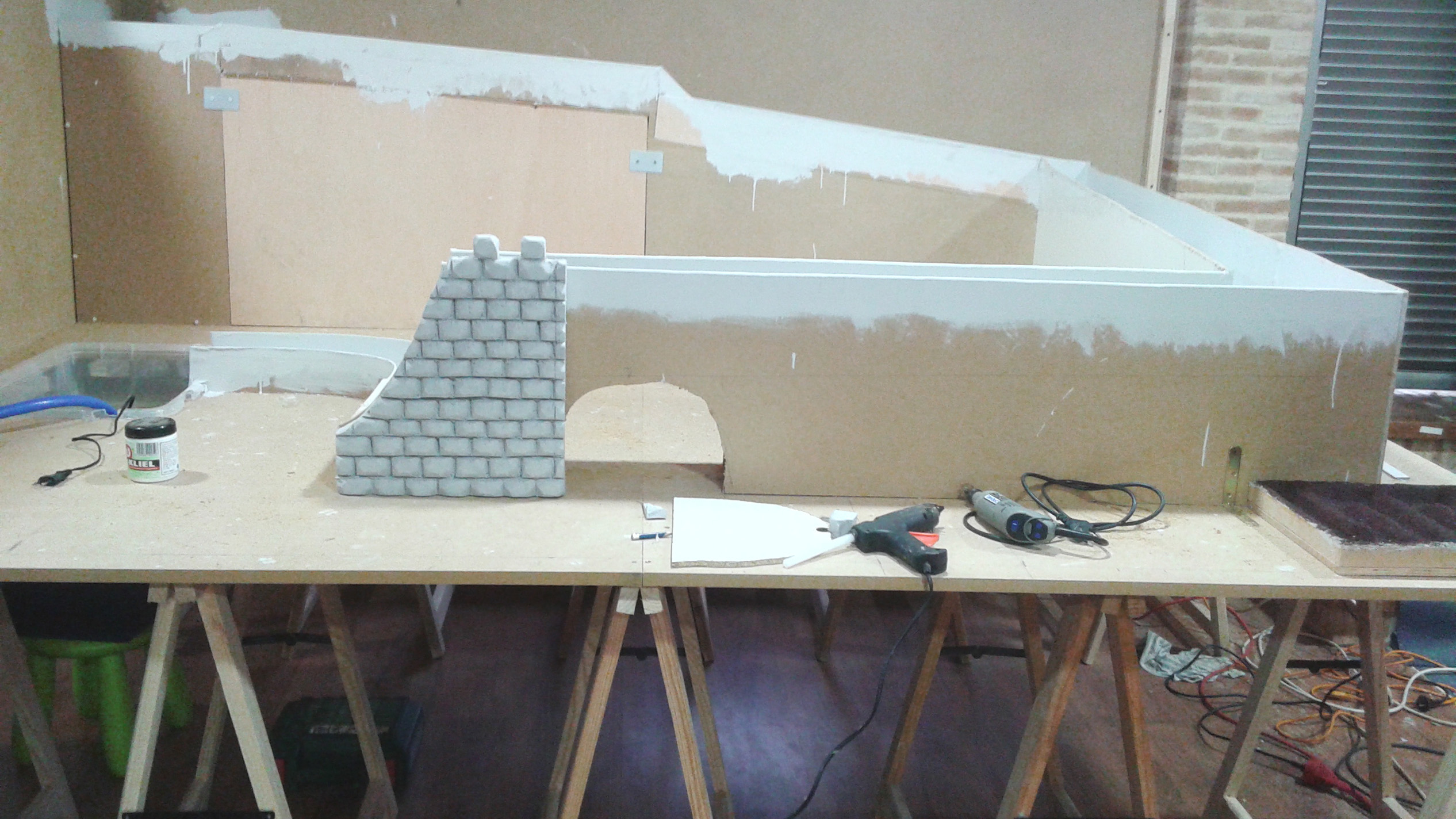 20150426_201818.jpg (847KB - 232 descargas)A la principal puerta de la muralla le faltaba la pilastra derecha, como alguno de vosotros bien dijo, que ya está acabada. Decidimos que en la esquina tenía que ir una torreta de control, así que la diseñamos y nos pusimos manos a la obra, trabajo que también acabamos. Y también, respecto a la muralla, estuvimos tallando y enfoscando la 2ª parte de esta, trabajo que no terminamos, pero que sí haremos esta semana que entra pues ya hemos acabado el instituto.