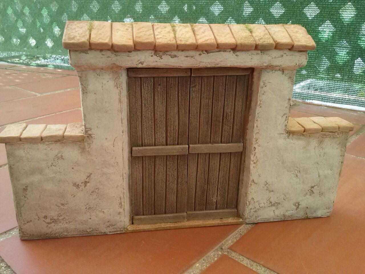 PUESTO DE CESTOS Y ESTERILLAS- Para figuras de 12 a 14 cm, realizado en madera, 24 cm largo, 17 alto y 7 ancho. PRECIO 20 euros