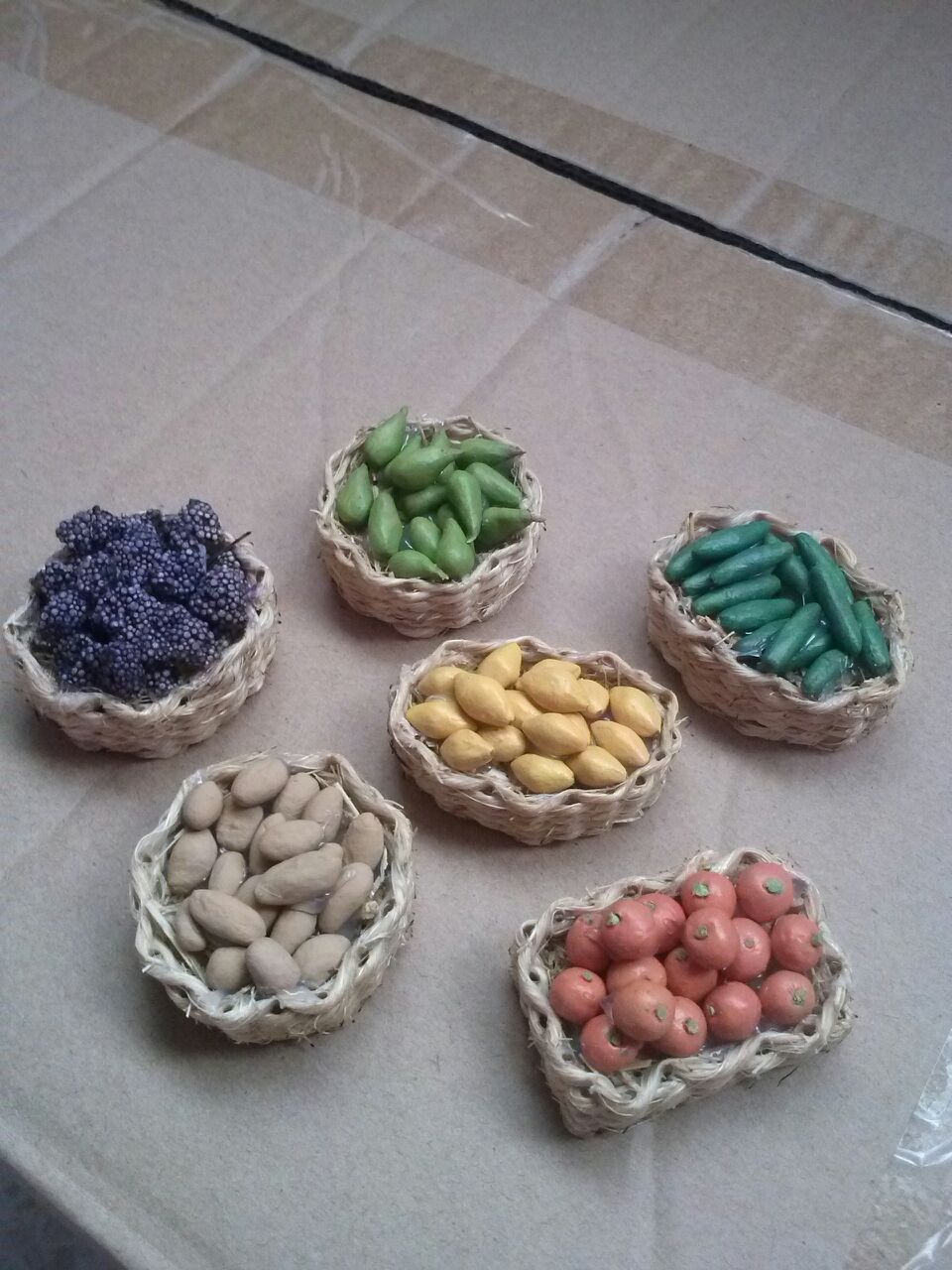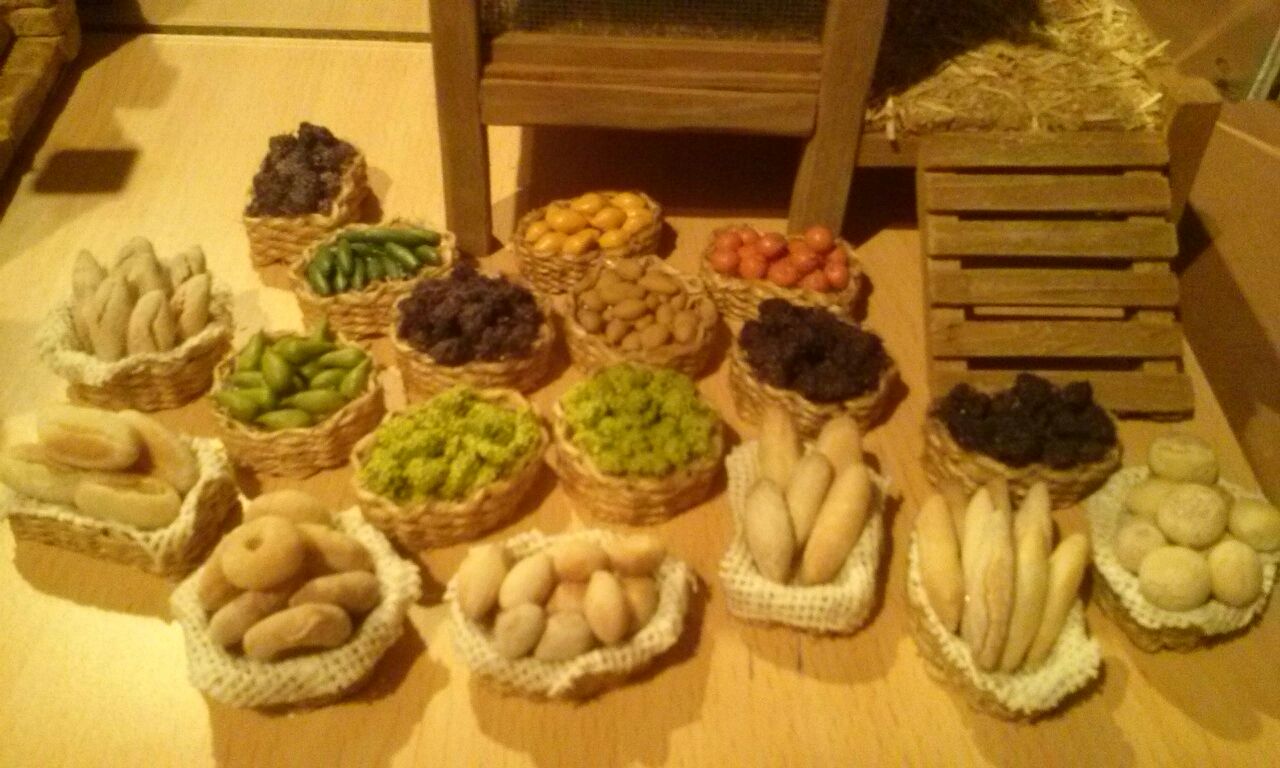 LOTE 6 CESTOS CON FRUTA, VERDURAS Y PAN - para figuras de 20 a 22 cm. PRECIO 10 euros