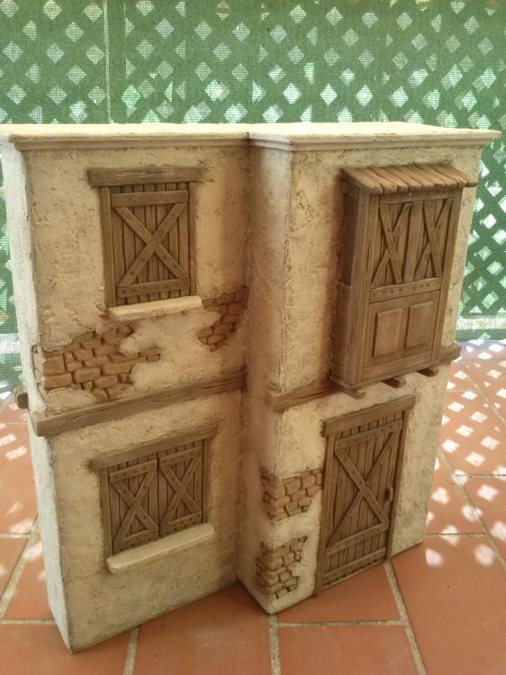 FACHADA DE CASA Nº 2- Para figuras de 11 y 12cm, 28 cm largo, 21 alto y 14 ancho total- PRECIO 19 euros